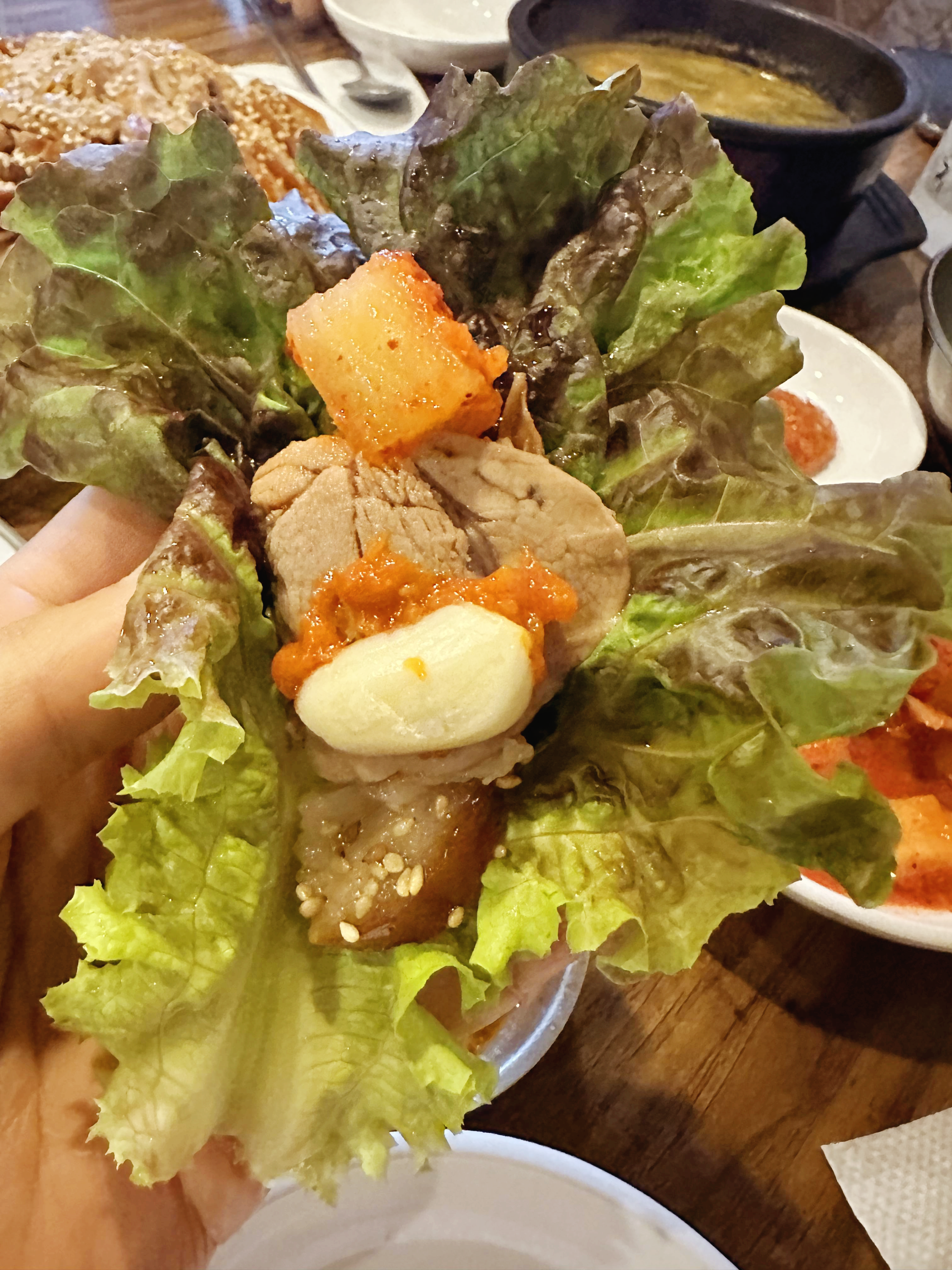 순댓국이 실하고 느끼한데 청양고추를 조금 넣고 깍두기 국물을 넣어서 먹으면 딱 좋다. 정말 밥을 말아서 술밥처럼 먹으면 좋을 것 같은데 하나 특징이 있다면 깻잎이 뜨거운 국물을 이기고 살아있는 경우가 있기 때문에 깻잎 향이 많이 난다. 족발은 앞서 이야기했듯이 씹는 맛보다는 부드럽게 사라지는 느낌이 강하다. 정말 부드러워서 콜라겐 부분은 젤리를 먹는 듯한 느낌이 나서 꿀떡꿀떡 잘 넘어간다.