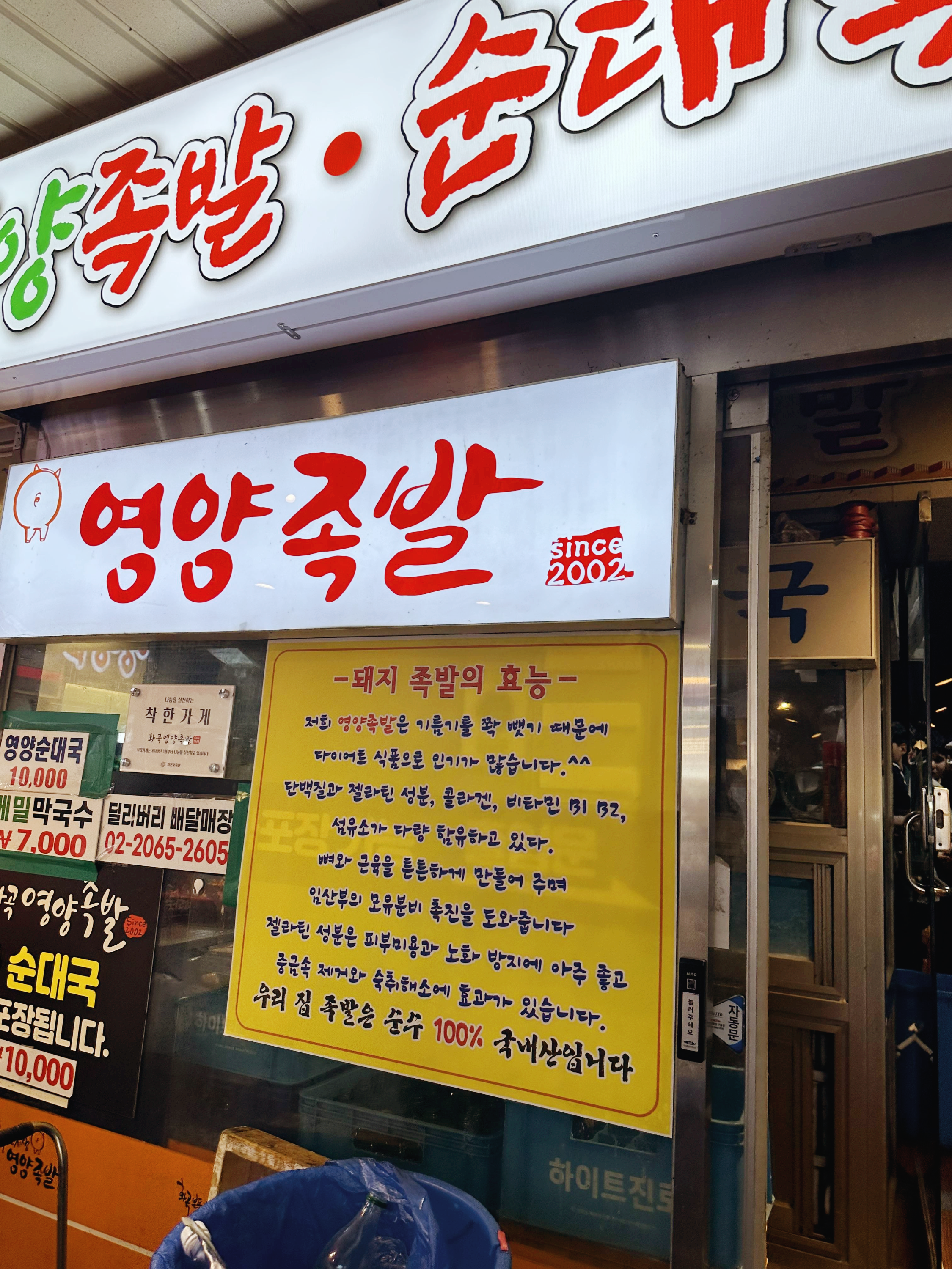 또한 홀이 너무나 바쁘기 때문에 서빙하시는 직원들이 신경을 쓰질 않는다. 그렇기 때문에 결제도 가끔은 기다려서 해야 하기 때문에 조금은 인내심을 가지고 식사와 결제를 하길 바란다. 그리고 위생에 엄청나게 민감한 분들이라면 식당을 찾지 않는 편이 좋다. 아무래도 시장 안에 위치하고 있고 족발의 특성상 외부에 꺼내 놓고 식혀야 하기 때문에 먼지나 이물질이 있을 가능성이 크다.