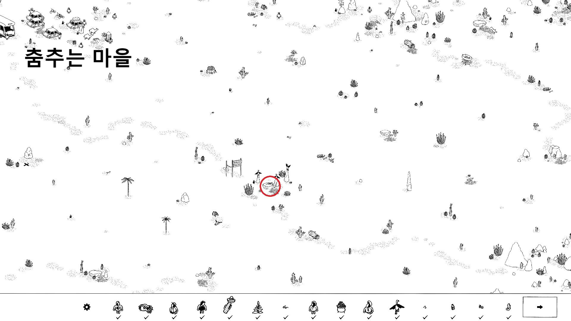 아까 독수리에서 오른쪽 대각선 위로 올라가면 춤추는 마을이 있습니다.