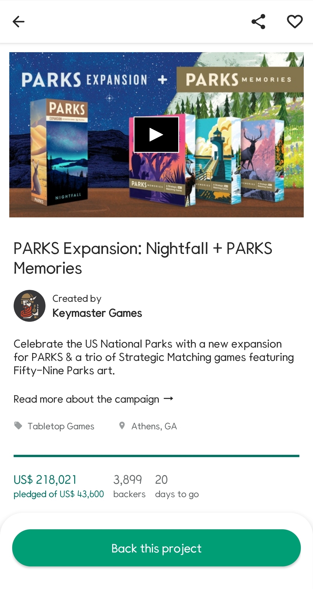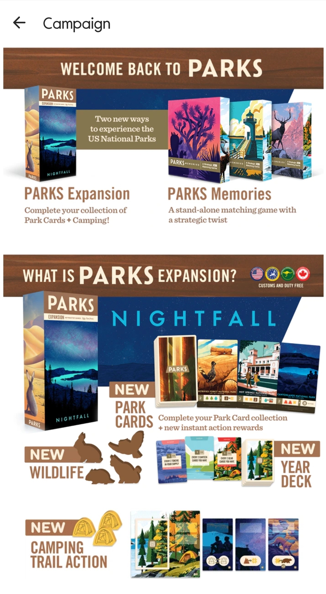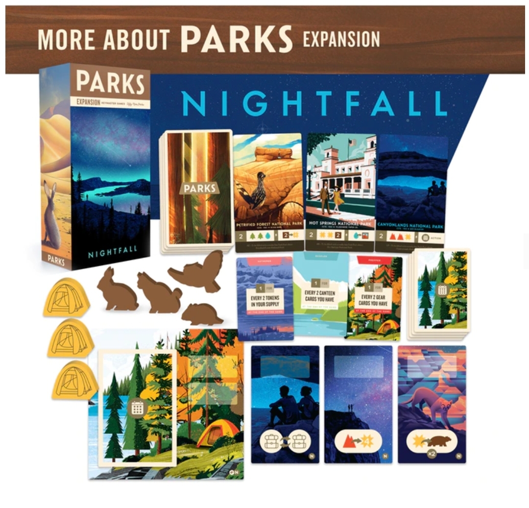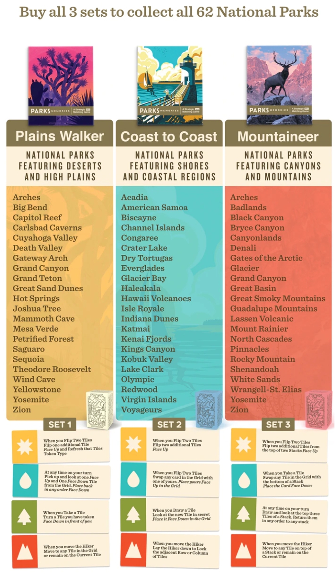 Celebrate the US National Parks with a new expansion for PARKS & a trio of Strategic Matching games featuring Fifty-Nine Parks art.