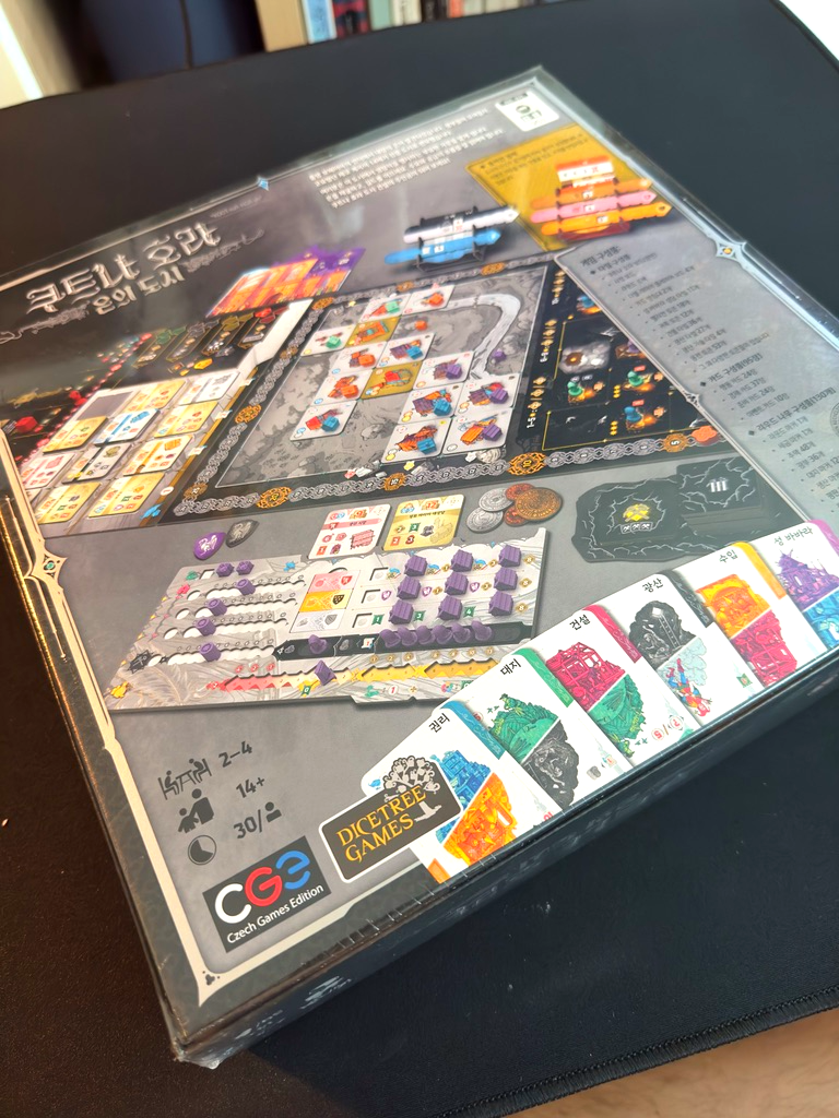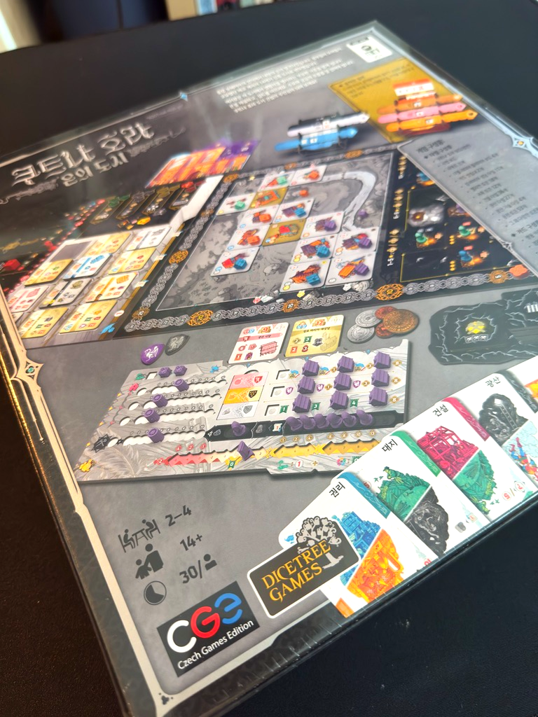 그러던 도중 이번 쿠트나 호라: 은의 도시는 내가 생각하는 개인 보드 + 중앙보드에서 중앙의 도시를 같이 지으면서도 협력 + 경쟁을 하는 이런 류의 괜찮아 보이는 보드게임이 나왔고 오랜만에 구매를 진행하였다. 물론 2023년에 나와서 영어버전을 구매할까 했지만... 아직도 뜯지 않은 영어 보드게임이 많기도 하고 이 정도 게임성이면 한글판이 나올법해서 기다리고 있었다. 이번에 보드피아에서 한글판을 발행해 줘서 구매를 하였다.
