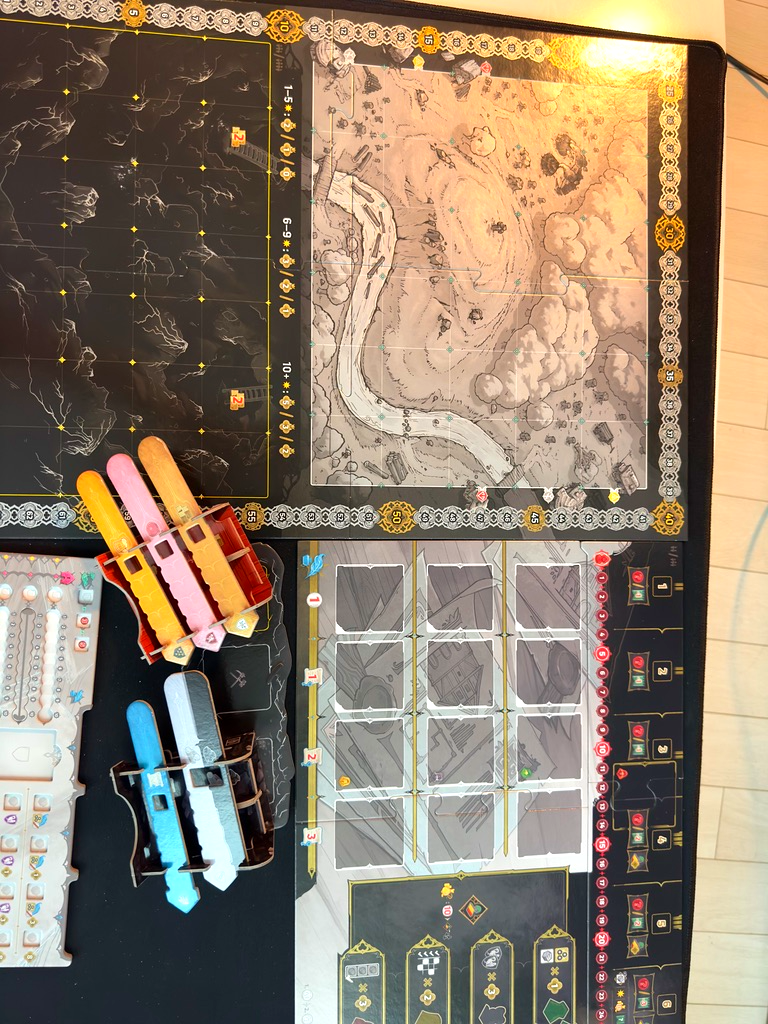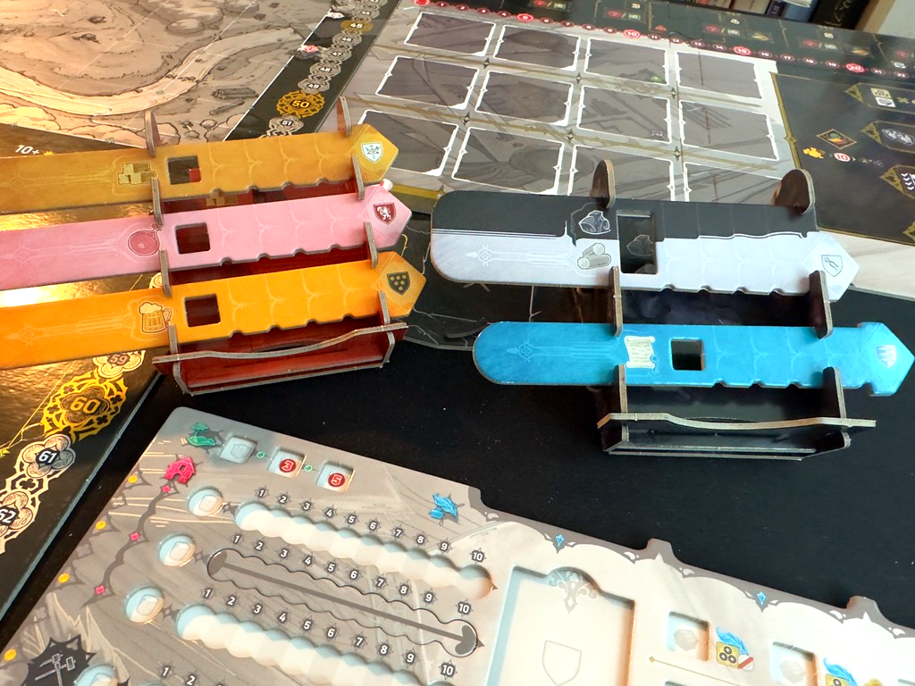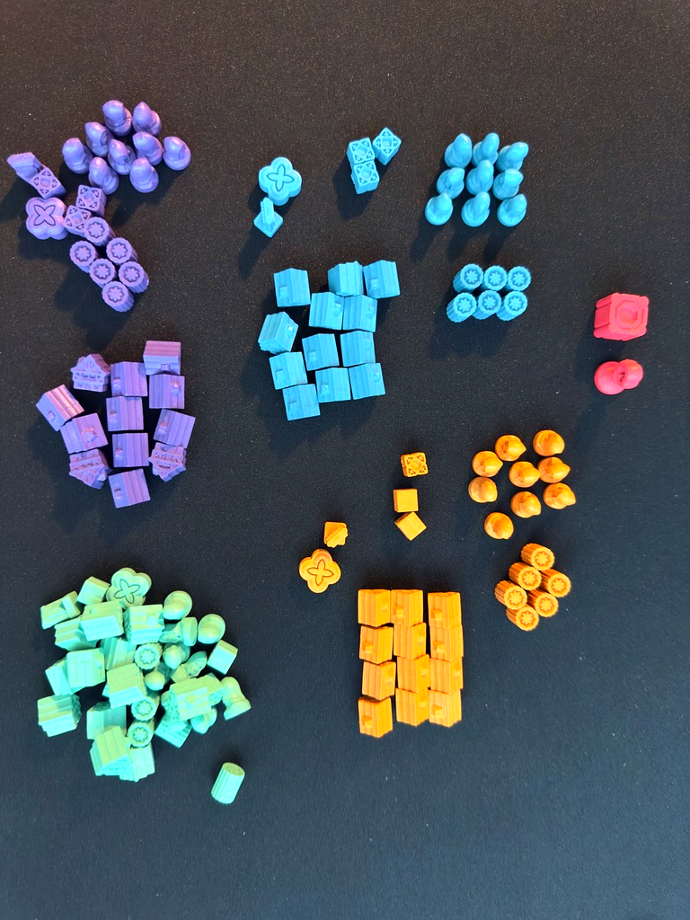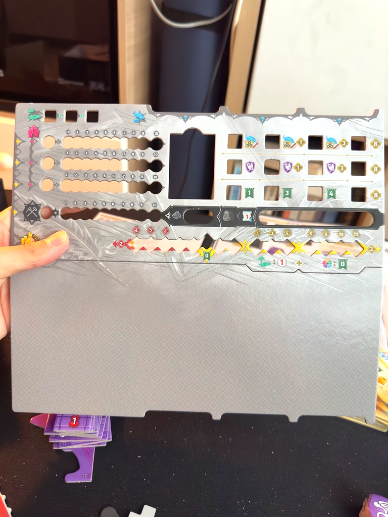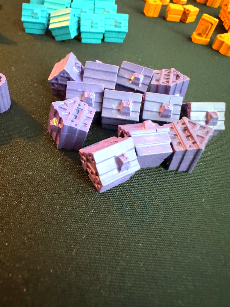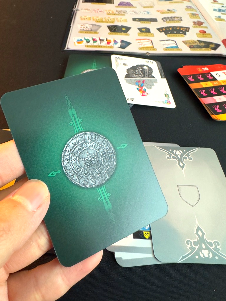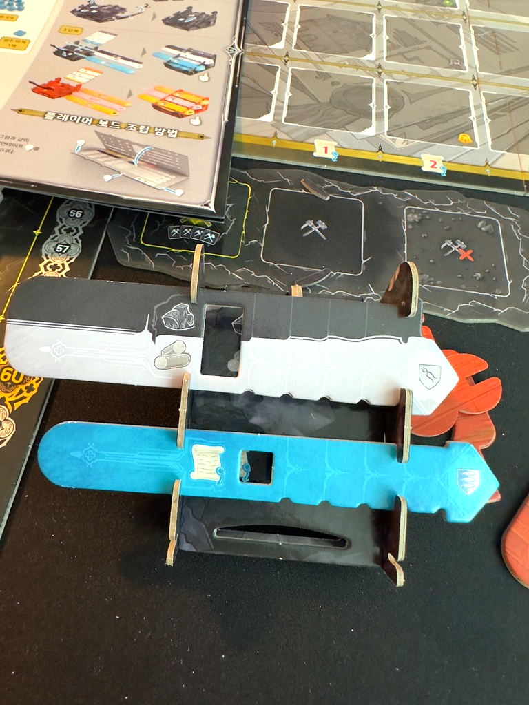 사실 타일은 펀칭 보드가 아무리 퀄리티가 좋아져도 아직은 한계가 있기 때문에 그게 그거지만 카드가 묘하게 재질이 좋아진 것 같다는 생각이 들었다. 약간 종이면서 플라스틱 같은 재질이라고 해야 하나? 코팅을 잘해서 그럴지도 모르겠으나 카드의 질이 생각보다 좋아서 놀랐다. 그리고 컴포넌트에서 이게 나무인지 플라스틱인지 모를 재질이었는데 3D 프린트로 만든 것 같은 느낌이 들었다.