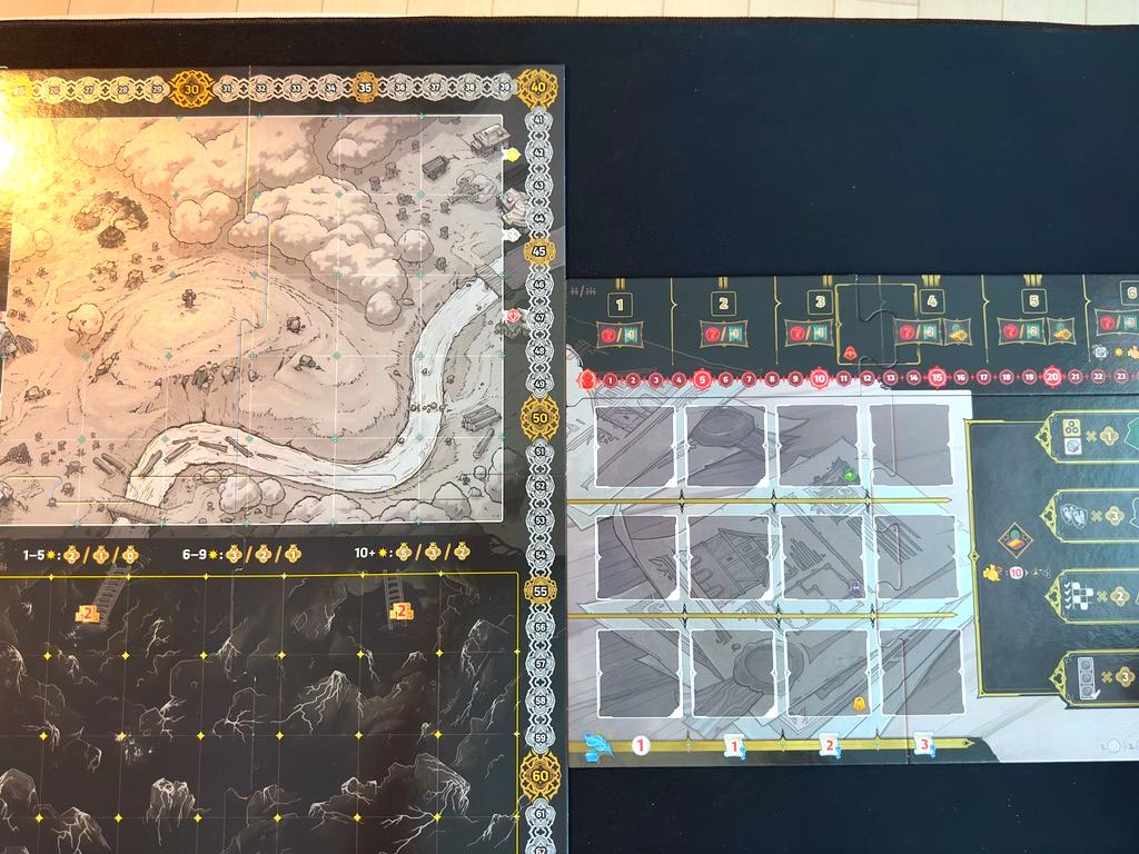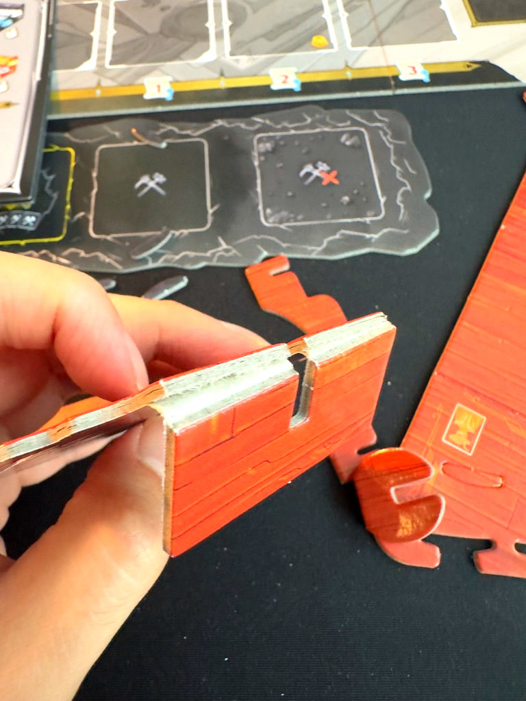 그리고 메인 보드판이 생각보다 커서 놀랐는데 메인 마을과 광산까지 합치니 이미 거의 대부분의 테이블이 차서 조금 놀랐다. 이거 테이블을 큰 것을 사던지 해야지... 작은데선 게임도 못하겠네 ㅜㅜ 그리고 이 보드게임에서 가장 특이한 형태의 조립식 마커가 있는데 이 부분이 직접 접어서 조립을 해야 하기에 조금 아쉬운 부분이 있었다.