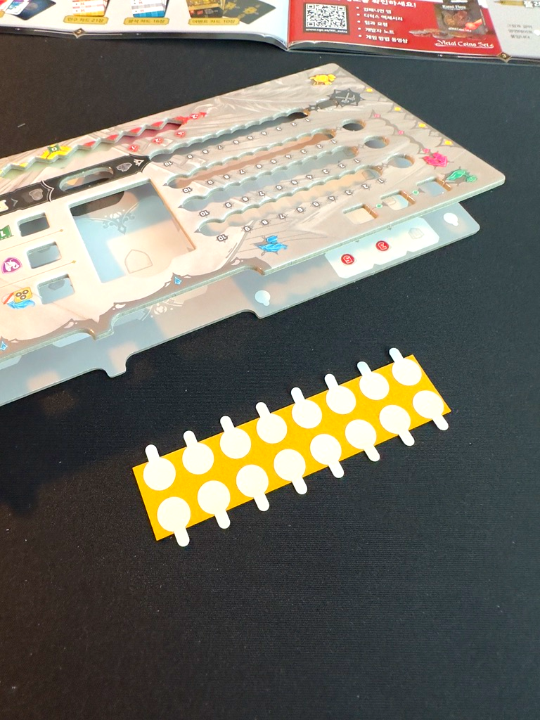 가장 쉽지 않은 건 개인 보드판이었는데 직접 접어야 하는 개인 보드판을 한 번도 안 본건 아니었으나... 조금 우려가 되었달까? 그 이유는 항상 접히는 부분에서 문제가 생기는 경우가 있기 때문인데 이 개인 보드판도 끝쪽이 접히는 부분이 들려버렸다. 양면테이프로 붙여서 사용을 하는 개인 보드판인데 이 부분에는 따로 붙이는 게 없기 때문에 따로 테이프를 붙여 조금 튼튼하게 해 줬다.