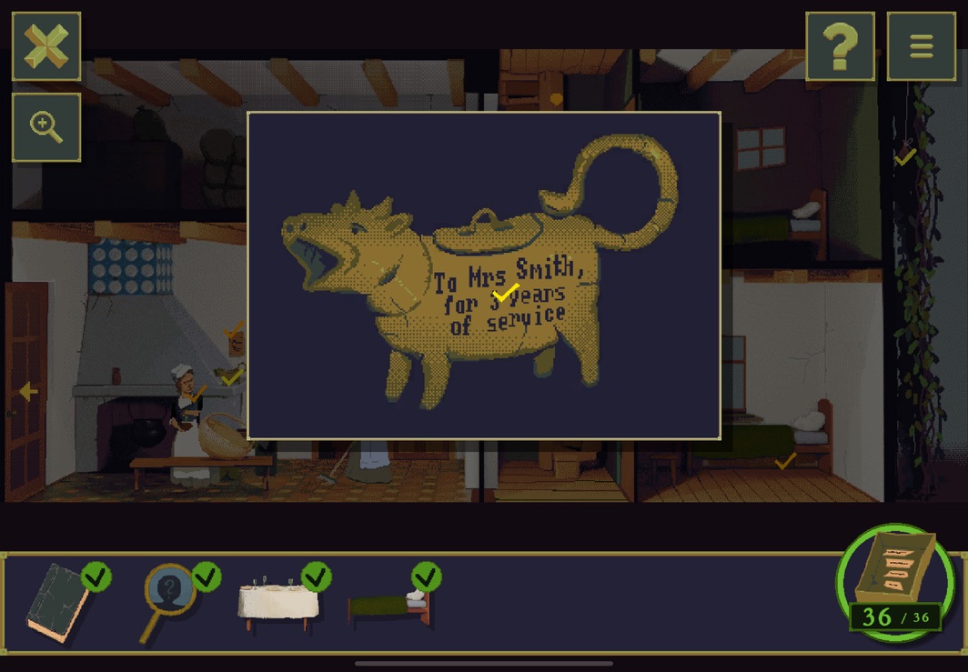 주방에서 해야 할 일이 적힌 부분을 보면 스미스, 워커, 베이커, N.B. 가 하인들이고 리틀 핍과 데이비드 고란이 따로 있다는 것을 알 수 있다. 그리고 오너먼트를 살펴보면 스미스 부인은 이미 3년이나 이곳에서 일을 하고 있다는 것을 알 수 있다. 그리고 할 일 마지막에 E.C.라는 이니셜을 보아 이 할 일 목록은 에드먼드 클라우드슬리가 썼다는 것을 알 수 있다.