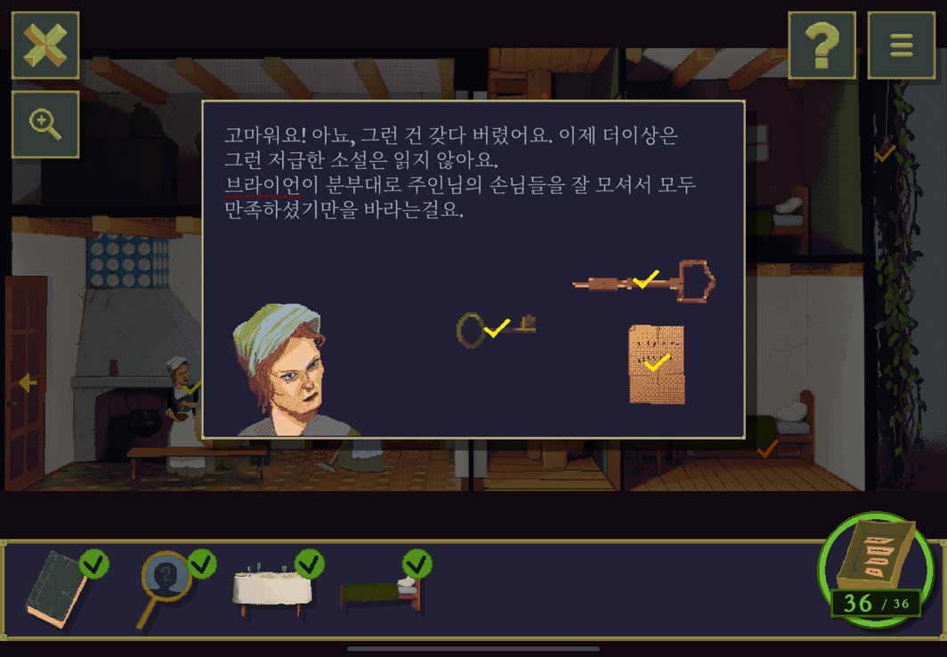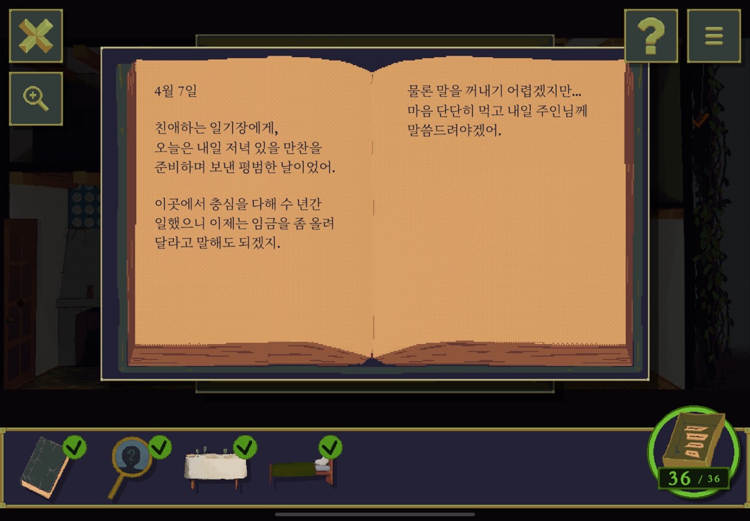 우선 공략이긴 하지만 태블릿, PC, 모바일마다 다르기도 하고 거기에 버전이 몇이냐에 따라서 또 뷰와 약간의 워딩이 다르기 때문에 공략을 볼 때 완전히 똑같지 않더라고 일단 뜻을 알고 가면 도움이 된다. 그리고 너무 많은 힌트 이용은 게임의 재미를 떨어뜨리니 조심하시길.