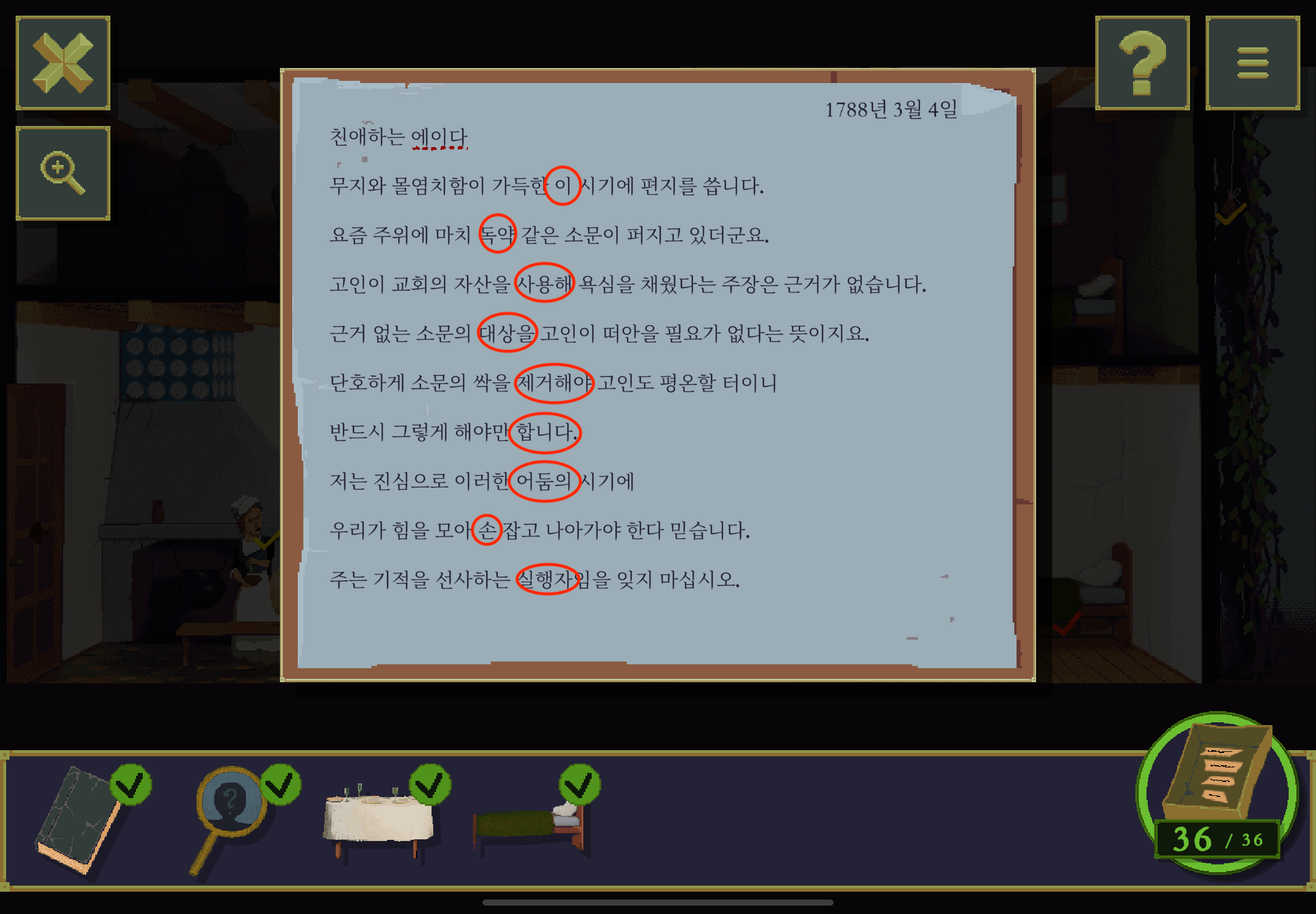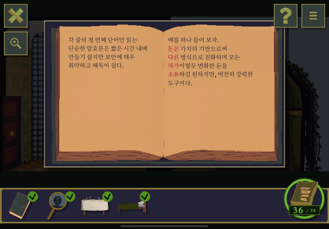 우선 공략이긴 하지만 태블릿, PC, 모바일마다 다르기도 하고 거기에 버전이 몇이냐에 따라서 또 뷰와 약간의 워딩이 다르기 때문에 공략을 볼 때 완전히 똑같지 않더라고 일단 뜻을 알고 가면 도움이 된다. 그리고 너무 많은 힌트 이용은 게임의 재미를 떨어뜨리니 조심하시길.