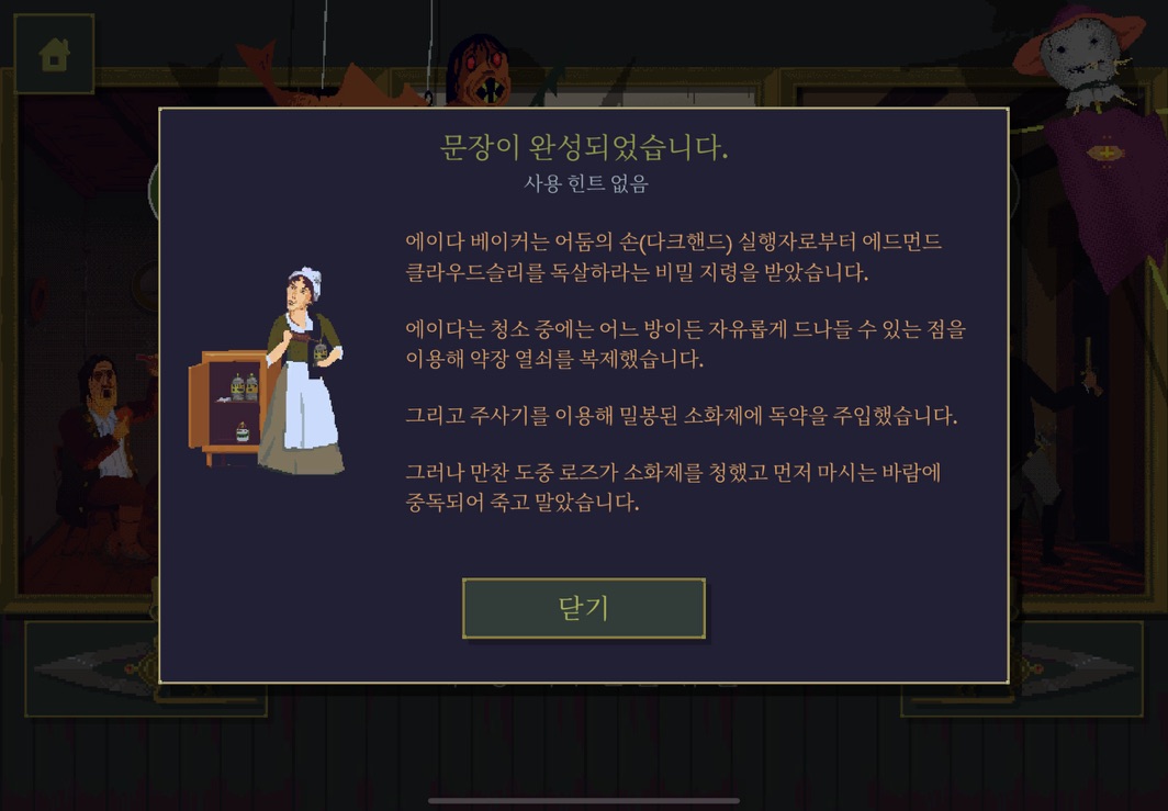 | 황금우상사건(The Case of the Golden Idol) - 제2장 저주 받은 유산 에피소드 6 공략 (1) (8) | 2024.08.31 |