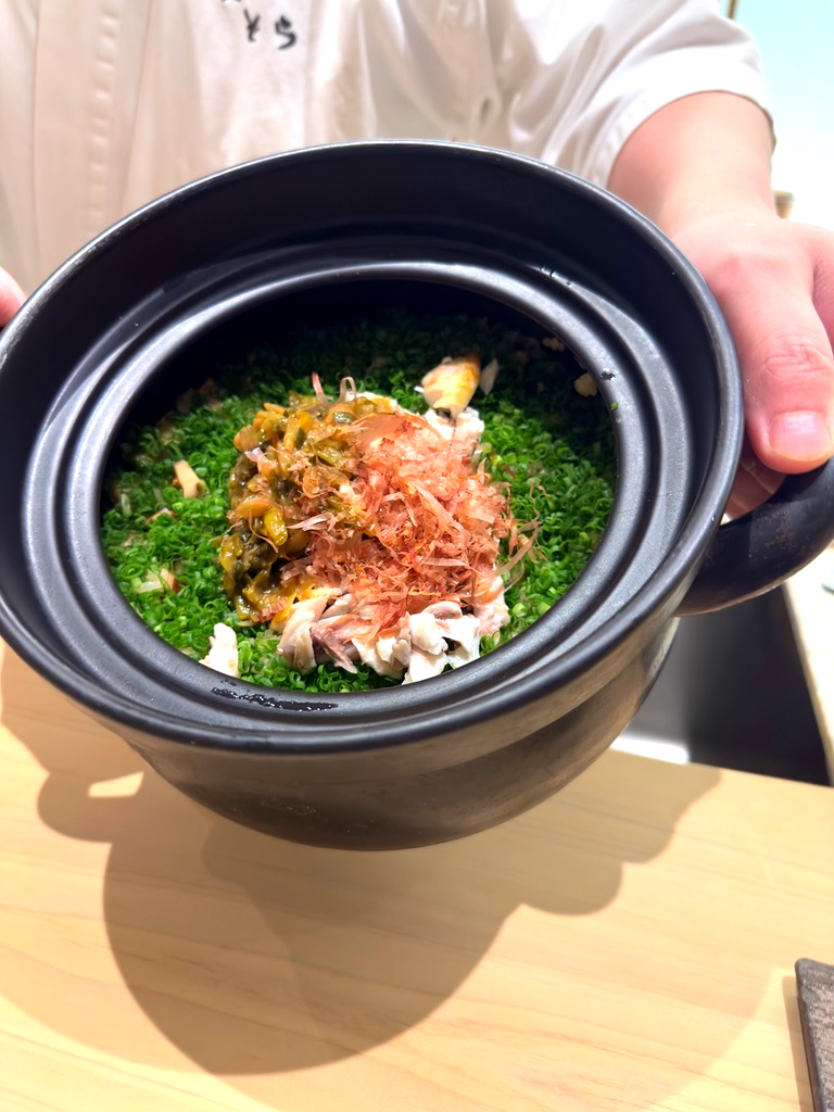 그래도 오차즈케 형식으로 먹고, 청양고추로 만든 유즈코쇼를 넣어서 먹으니 뜨끈한 국밥에 다진 양념을 푼 것처럼 시원하고 속이 풀리는 느낌이 나서 좋았다. 그냥 솥밥을 먹는 것보다 오차즈케 형식이 더 좋았고, 와사비는 그냥 솥밥을 먹을 때 넣어서 먹고 오차즈케는 유즈코쇼와 같이 먹는 걸 추천한다.