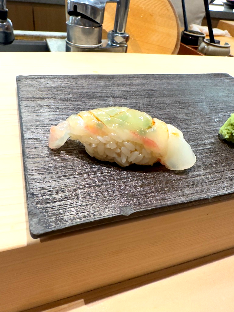 이번 방문에서 가장 맛이 좋았던 건 제철인 시마아지였다. 확실히 기름기가 있어서 고급 어종임을 확실히 뽐냈는데 그 기름의 고소함과 약간 비릿함이 잘 어울려져서 가장 좋았다. 만일 앵콜 스시를 주문했다면 아마도 이 줄무늬 전갱이를 주문하지 않았을까? 그다음 맛있었던 건 네기토로와 단새우였다. 그래도 아직 확실히 맛이 오르진 않았지만 그래도 실패가 없는 조합이기 때문에 꽤 맛있게 먹었다.