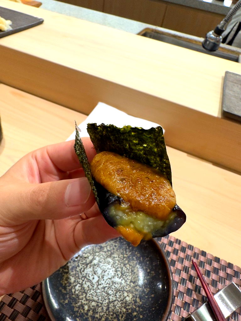 마지막 스시로 후토마끼와 교쿠를 냈다. 사실 개인적으로는 교쿠는 시메노고한 전에 먹기보다는 마지막 밥을 먹고 나서 먹는 걸 좋아하기 때문에 남겨 놓았다가 먹었다.