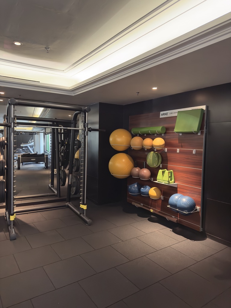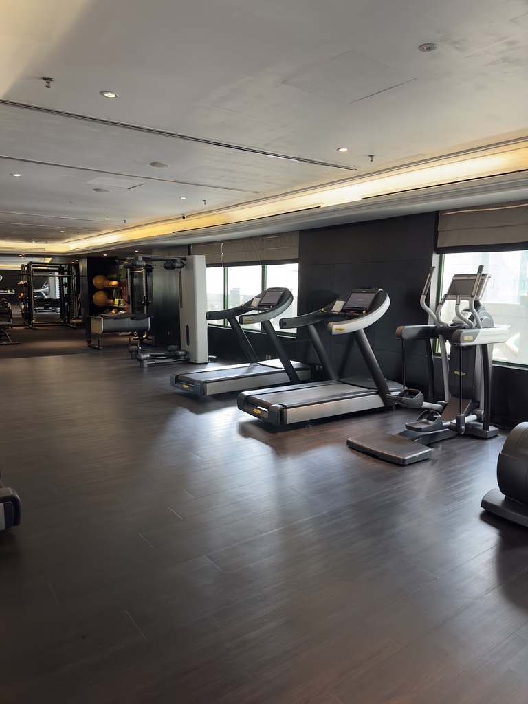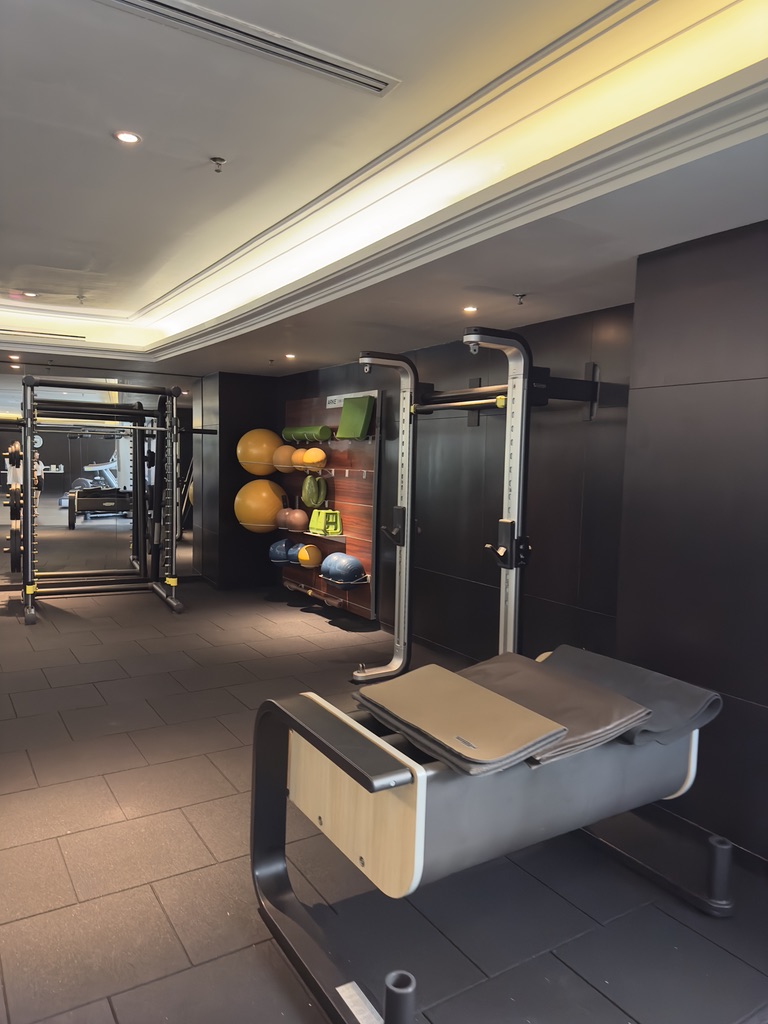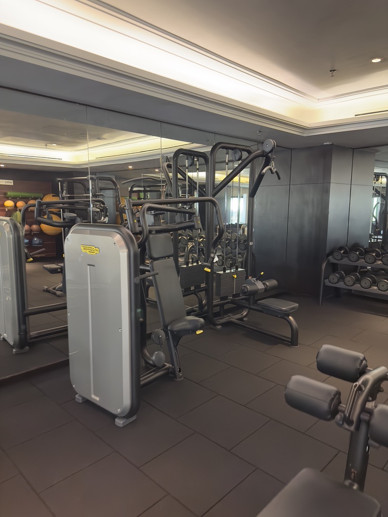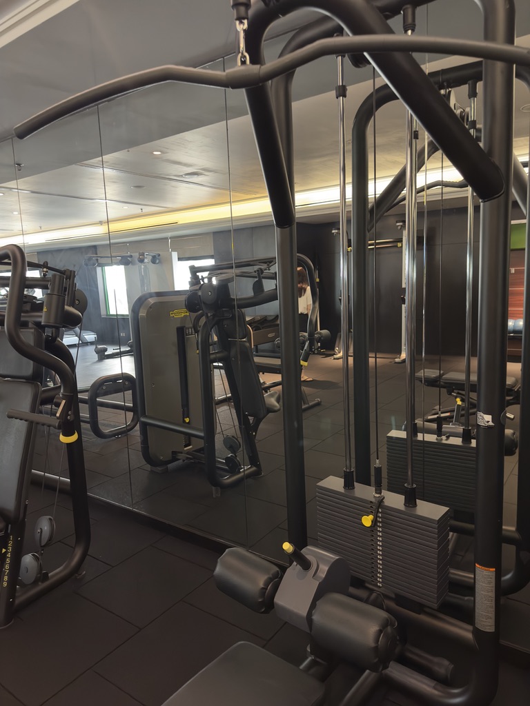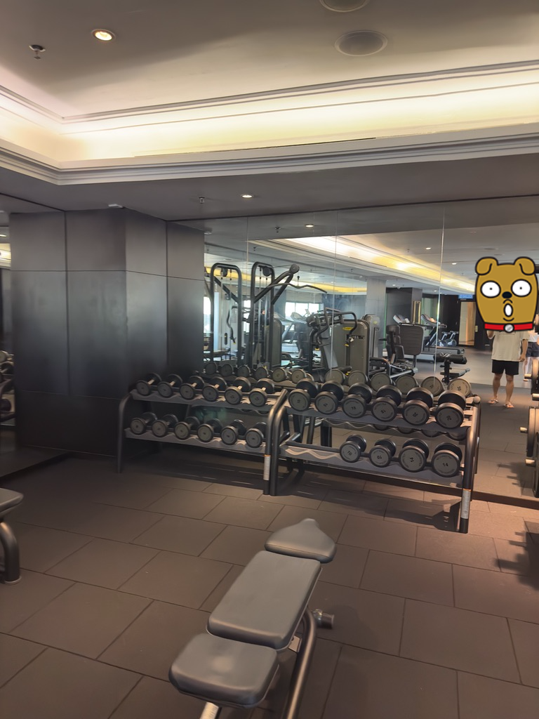 헬스장은 24시간으로 안내되어 있지만 저녁에는 가본 적이 없어서 정말로 운영하는지는 알 수 없다. 새벽에 운동을 하는 사람이 많지는 않기 때문에 사실 24시간이라고 해도 운영이 안 되는 경우도 있기 때문이다. 그래도 짐 자체는 나쁘진 않았는데 유산소 쪽에는 마루로 되어 있고 러닝머신 2대와 자전거가 있었다. 그리고 프리웨이트 쪽에는 스미스 머신과 렉, 그리고 체스트 머신, 그리고 이상한 전신 운동기구가 있었다. 이 케이블로 된 전신 운동기구는 동남아 헬스장을 가보면 한 대씩 꼭 있는데... 막상 사용해 보면 이도저도 아니어서 안 하게 된다. ㅋㅋ