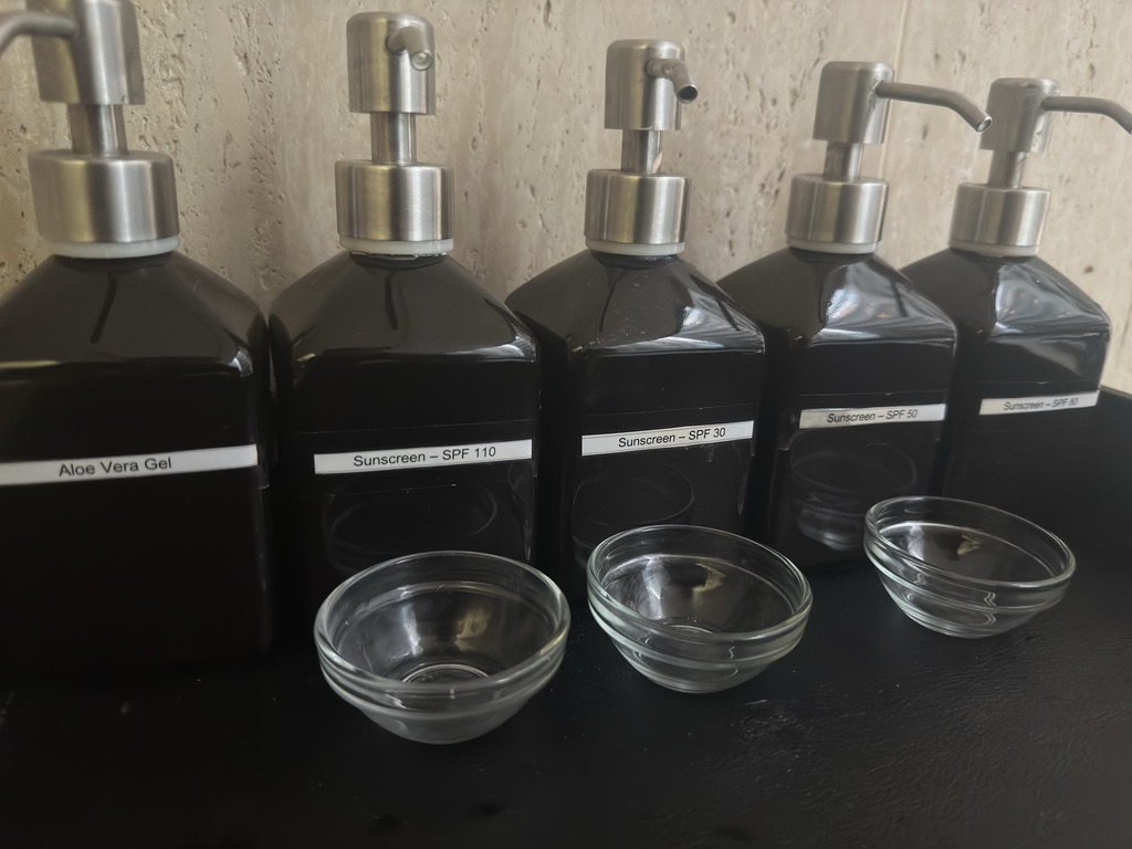 그 왼쪽으로 바로 선크림을 구비해 두었기 때문에 만일 준비해 오지 않았다면 이용해도 된다. 우리가 방문을 했을 때에는 이곳은 수영하는 사람이 꽤나 많았고 위쪽에 위치한 수영장에서는 수영하는 사람이 거의 없었다. 이 밑쪽 수영장은 해가 거의 들어오지 않기 때문에 사실상 썬베드의 의미가 없었다.