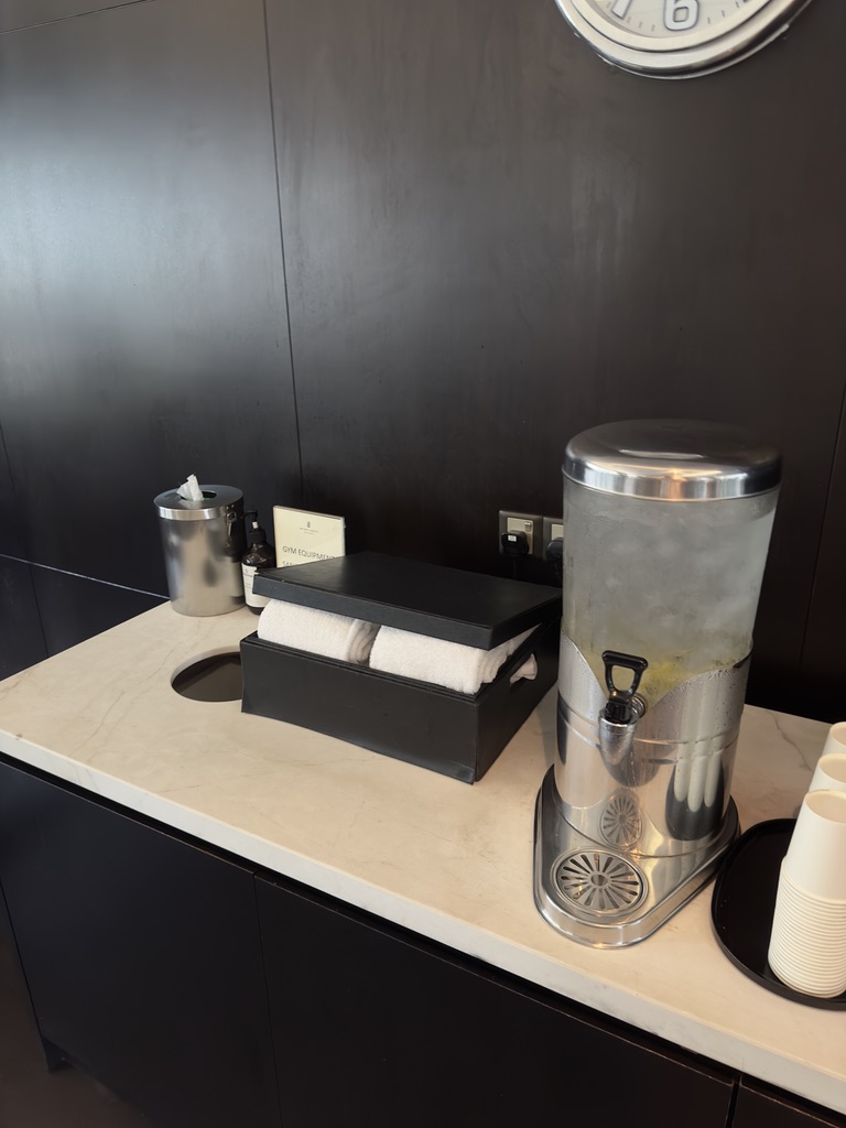 유산소 머신 뒤쪽에는 물과 수건 등이 구비되어 있고 기구 이용 전후 청소하는 알코올 스왑이 있어서 이용하면 된다. 프리 웨이트 존에는 스트레칭을 할 수 있는 기구들과 렛풀다운 하체 머신 등이 있었는데 모두 테크노 짐 제품들이어서 익숙했다. 렛풀다운 머신이 생각보다 등이 잘 먹어서 많이 이용했고, 스미스 머신의 경우에는 바를 잡아 주는 케이블이 없어서 바 중량을 그대로 느낄 수 있었다.