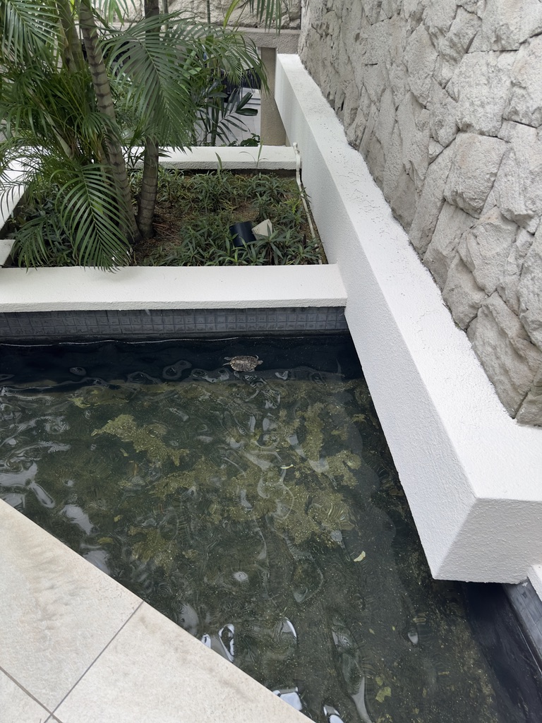 이곳도 건물이 많이 둘러싸고 있으나 조금 뚫린 곳이 있어서 해가 있을 때에는 꽤나 강하게 햇볕이 내리쬔다. 길어 보이는 풀이지만 그렇게 길진 않고 한 10m 정도였다. 그리고 폭이 좁아서 두 사람이 교차로 수영하기도 벅차기 때문에 수영 실력을 뽐낸다고 마냥 수영을 할 수 있지는 않다.