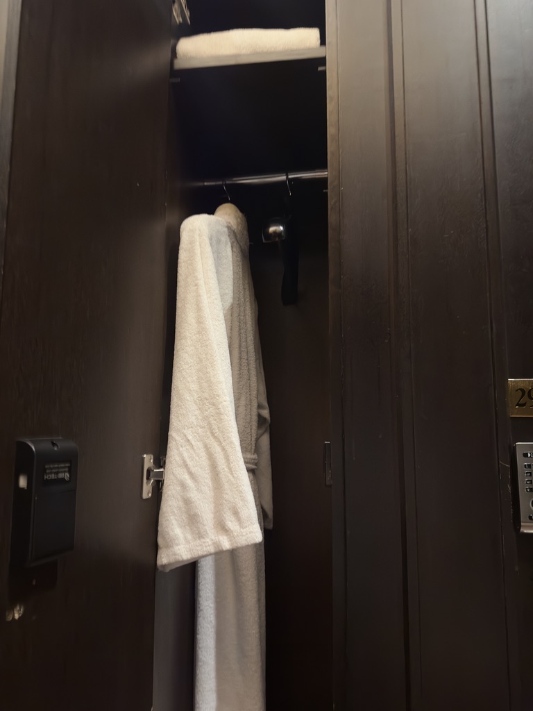 락카에는 가운, 수건, 슬리퍼가 있기 때문에 방에서 굳이 가운을 입고 내려오지 않아도 된다. 아니면 여기서 수영하면서 젖은 가운을 두고 새 가운을 입고 올라가는 것도 방법이다.