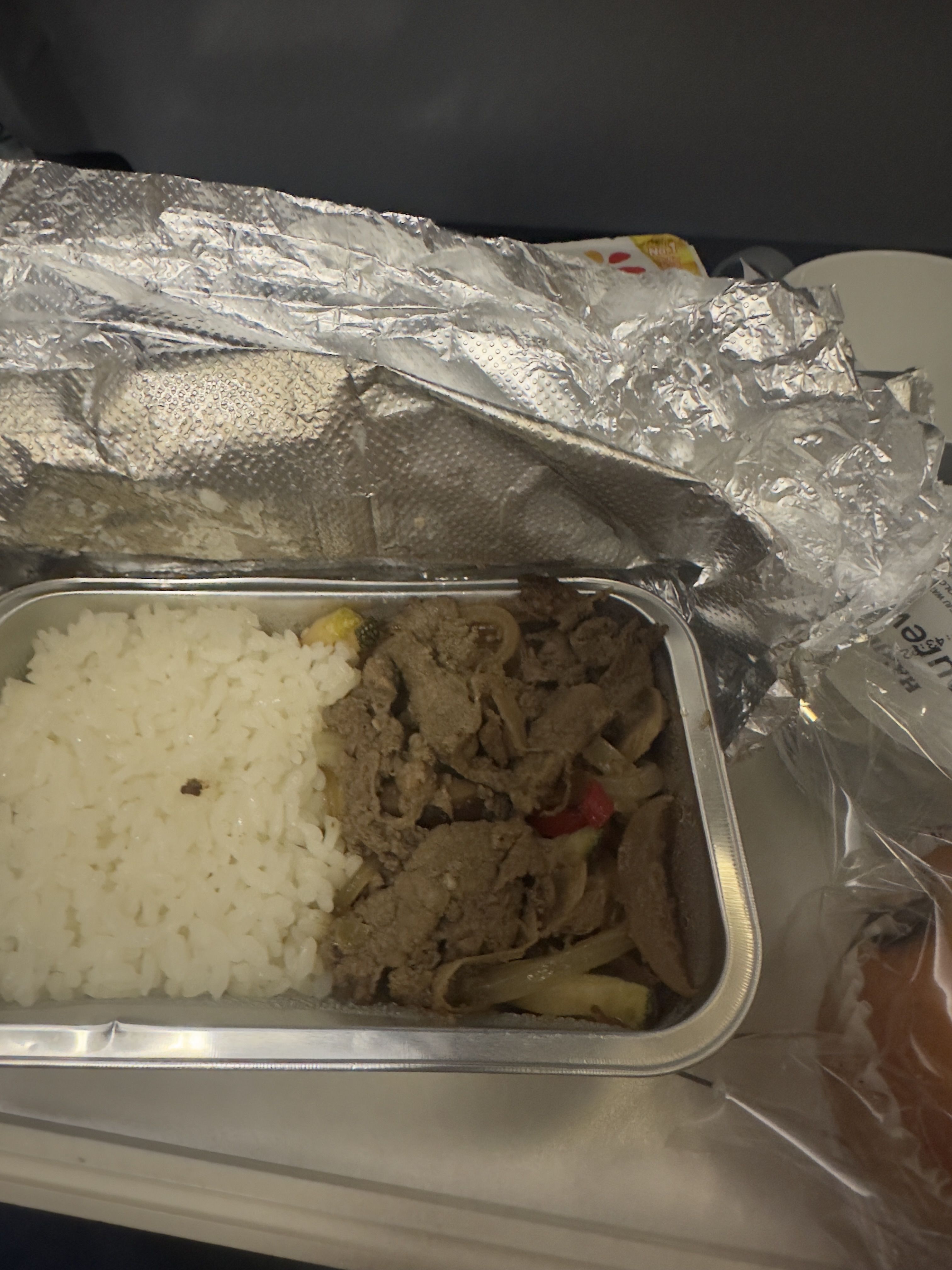 그래도 그 정도는 이해가 간다. 왜냐하면 새벽 비행기이기 때문에 서로 힘들다는 것은 알기에 뒤의 좌석을 승무원들이 앉게 만들어 놓고 잠시 눈을 붙이는 모습은 딱하다고 참 딱하기도 했다. 하지만 밀 서비스 중간중간에 보여주는 모습이 아주 웃펐는데 바빴는지 뒤로 갈 수 있는 공간이 없었는지는 알 수 없으나 부족한 음료, 음식 트레이, 각종 서비스 품목들을 중간 좌석에 있는 승객들의 머리 위로 계속해서 옮겼다.
