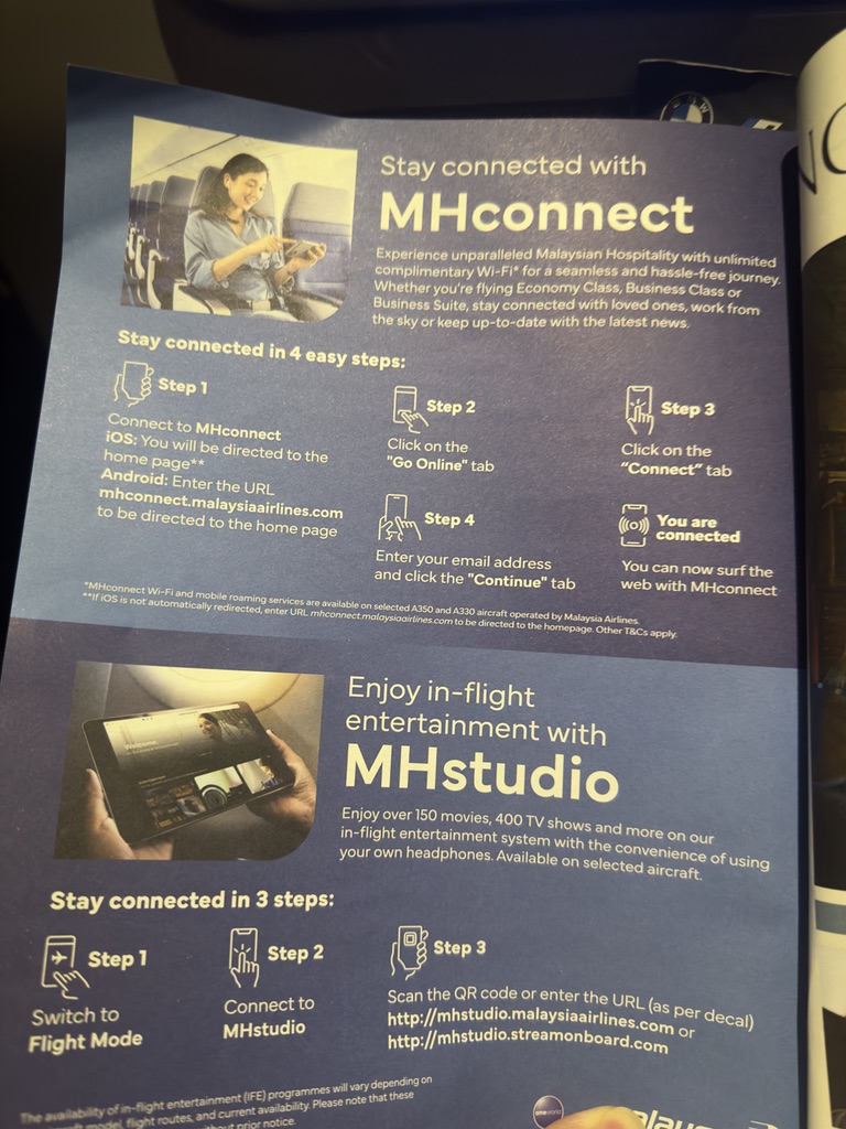 - MHconnet라는 와이파이에 연결한다. (안드로이드 같은 경우에는 mhconnect.malaysiaairlnes.com에 연결, iOS의 경우엔 바로 연결창이 뜬다. - 만일 안 뜨면 와이파이를 삭제하고 다시 연결하거나 url을 입력해 보면 된다.)