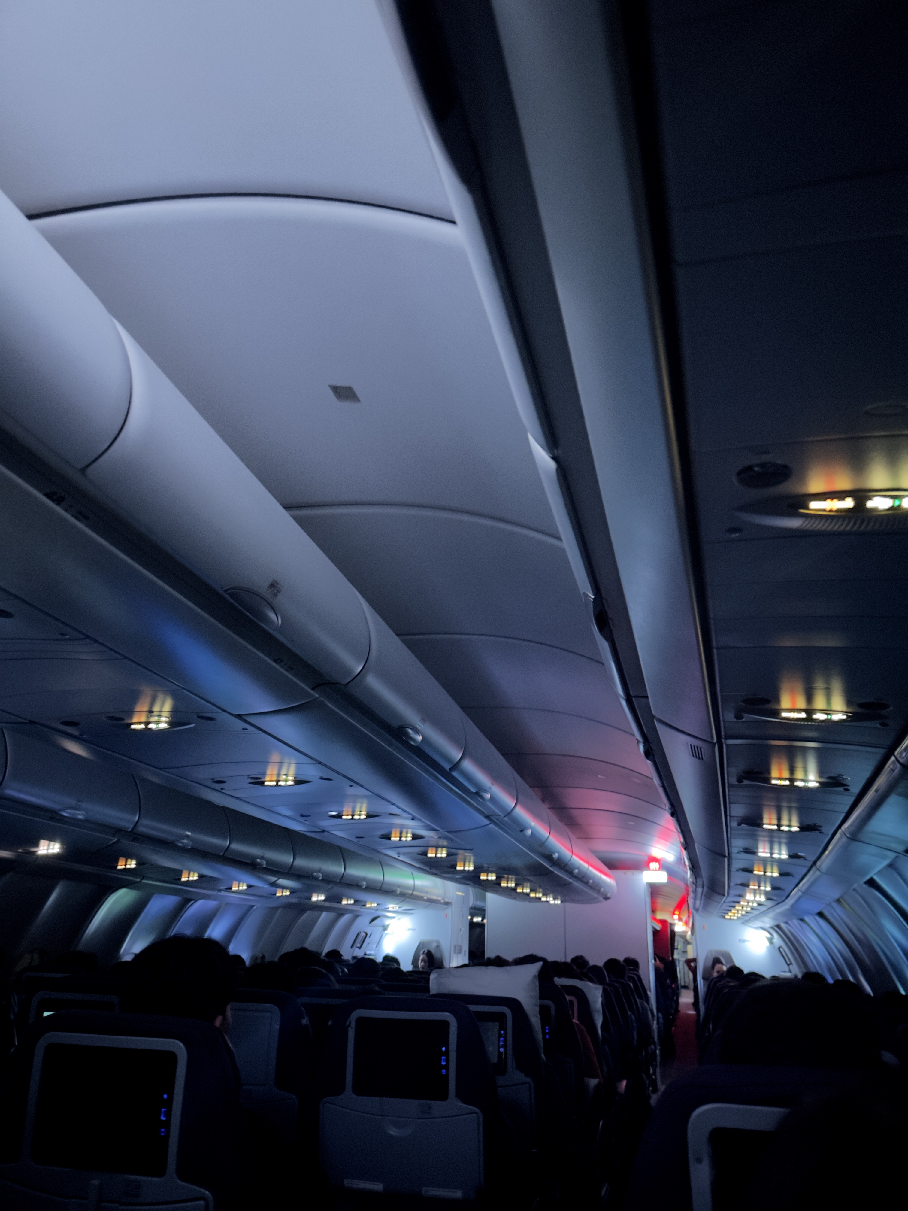 사실 이 정도로 작으리라고는 생각하지 못했는데 상상하는 것보다 더 좁은 비행기였다. 원래 비행기는 에어버스 A330-300이었는데 갑자기 200으로 바뀌었고 좌석도 이미 다 예약이 되어 있어서 뒤쪽 밖에 남지 않았다. 알기로는 이 200 기종은 단축형으로 거의 좌석의 수는 같지만 크기가 작고 좌석을 꽉꽉 채운 기종으로 알고 있다.