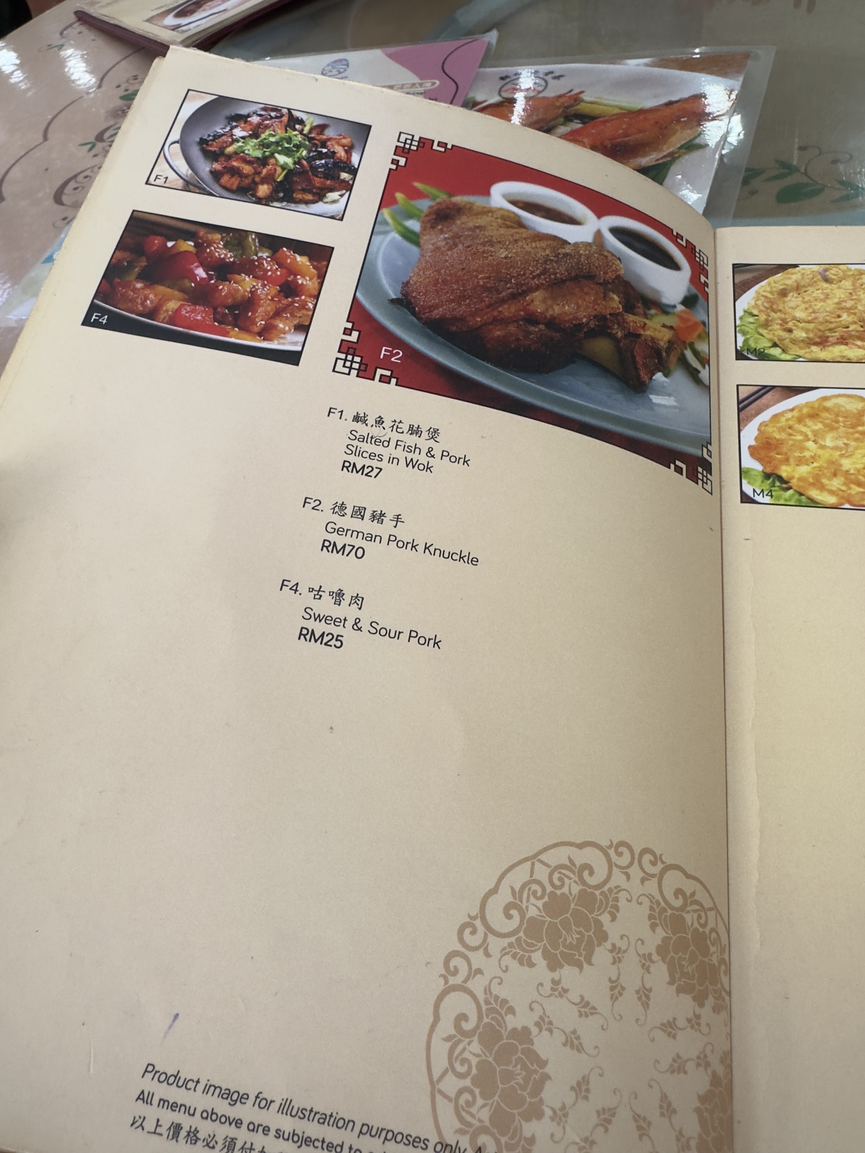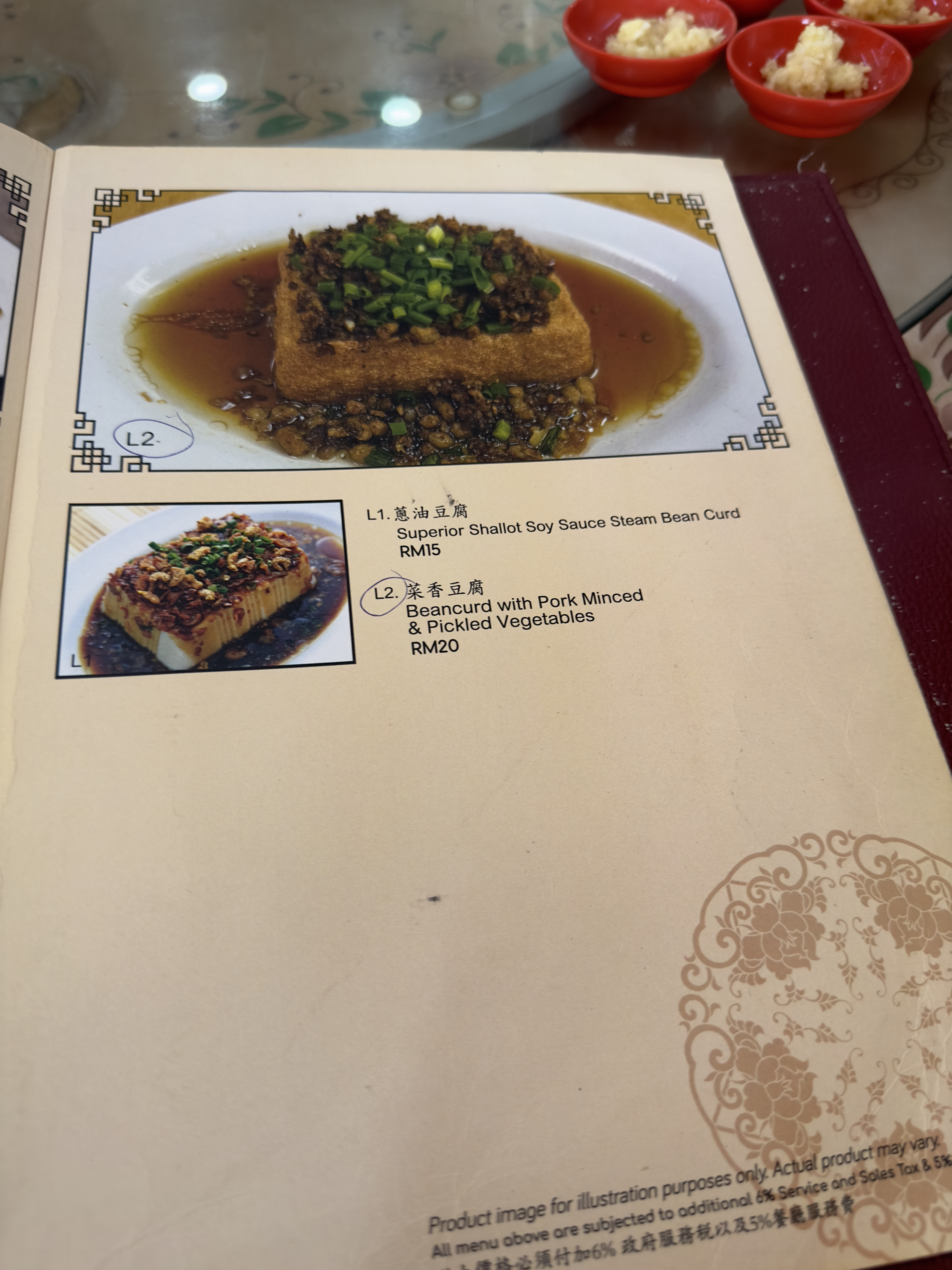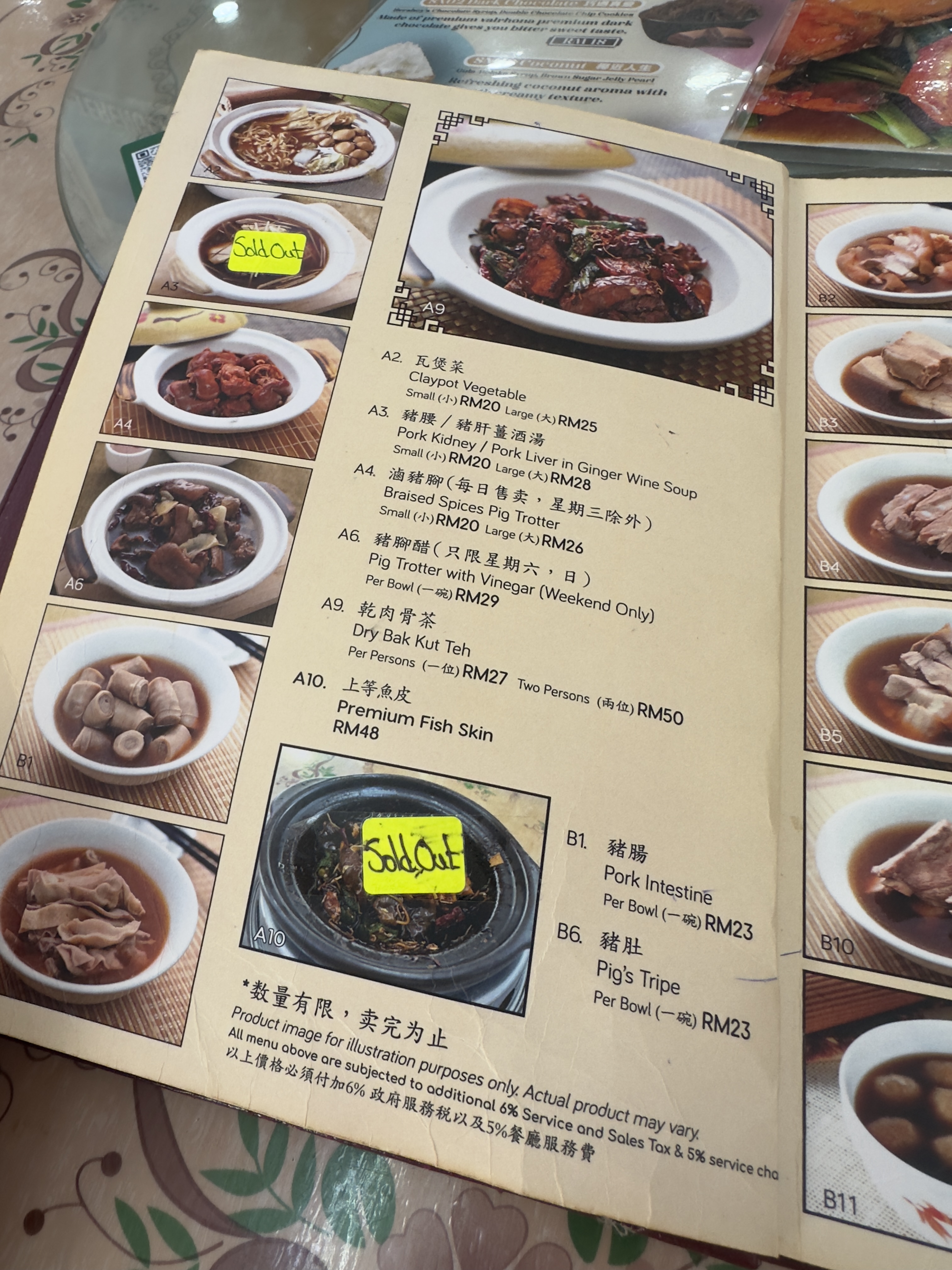 테이블에 안내를 받고 메뉴를 살펴보니 바쿠테뿐만 아니라 해산물도 있었다. 바쿠테집에서 무슨 해산물을 하지?라는 생각을 하기도 했지만 중국의 식당은 메뉴의 수로 그 주방장의 실력을 드러낸다고 하니 뭐... ㅋㅋ 우리는 국물 바쿠테 2인용, 드라이 바쿠테 2인용, 공심채 삼발 볶음, 차이브 숙주 볶음, 족발, 밥을 주문을 했고 차나 음료는 따로 시키지 않았다. 이번 여행에서 가장 특이한 점은 우리가 물과 음료를 전혀 시키지 않았다는 점이다. 어디서 어떤 내용을 들었는지 알 순 없지만 임산부인 제수씨를 위해서 엄마가 물을 페트병으로 바리바리 싸들고 왔기 때문에 나머지 사람들은 졸지에 단수를 당했다. ㅋㅋ