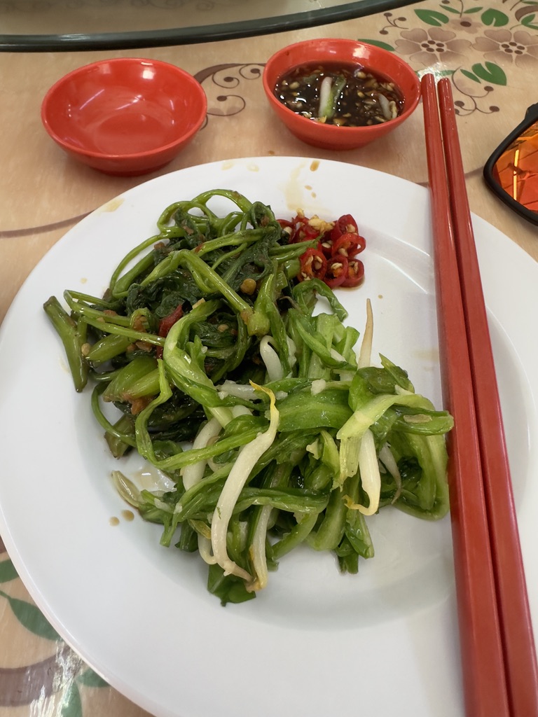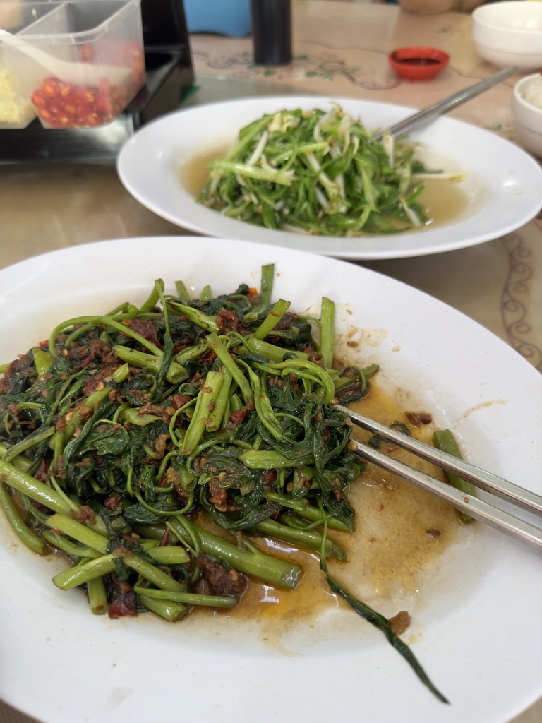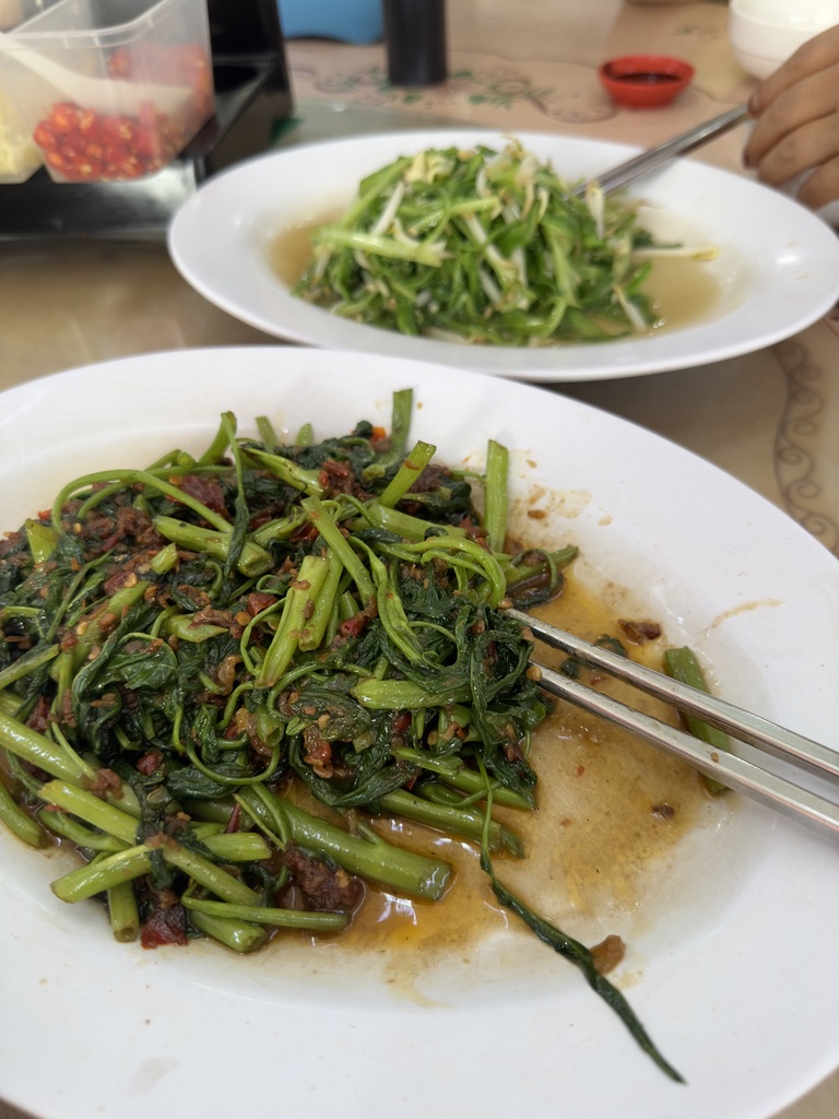 정말 밥도둑이었는데 이른 아침이 아닌 점심에 먹었으면 드라이 바쿠테만 더 시켜서 밥과 함께 퍼먹고 싶은 느낌이 들었다. 원래 바쿠테를 한 사람당 하나 정도씩 시키려 하였지만 너무 이른 아침이고 처음부터 충격요법이 아닌 그저 충격으로만 다가오면 안 되기 때문에 자제했다. 삼발소스에 볶은 공심채의 맛은 새우, 멸치 젓갈로 만든 매운 소스에 공심채를 볶은 맛이었다. 말레이시아에서 거의 모든 끼니에 삼발이 들어간 음식을 먹었는데 단맛, 짠맛, 감칠맛, 심지어 매운맛까지 모두 있는 소스인데도 무언가 만족이 되지 않았다.