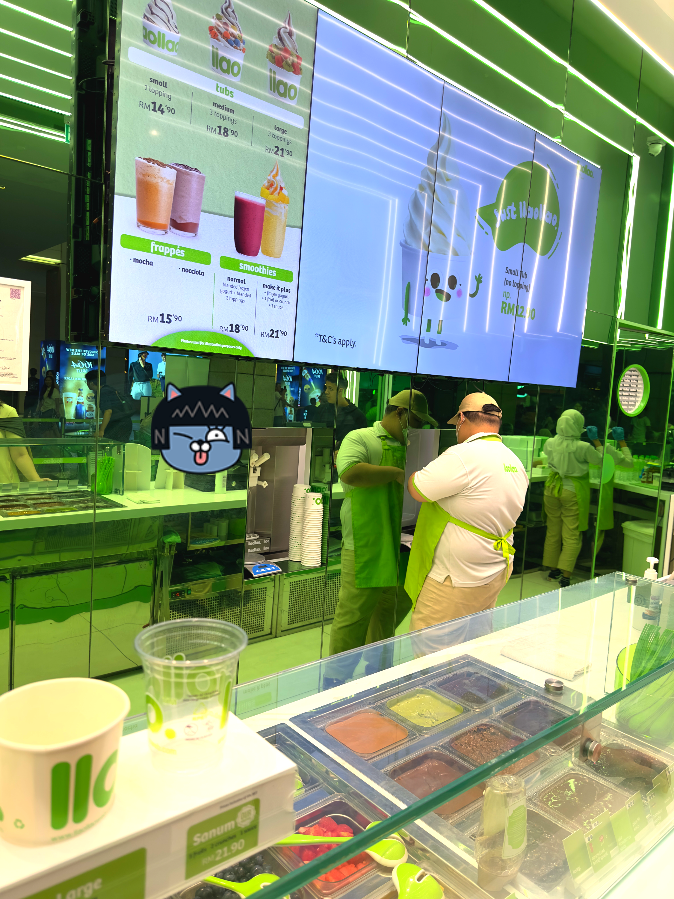 파빌리온의 음식점과 펍이 몰려 있는 1층에 위치한 이 야오야오는 초록색 불빛으로 사람들을 유혹하고 있다. 바로 옆에는 아라비카 커피가 있어서 두 개의 힙한 매장이 붙어있다. 참고로 맞은편 쪽에 파이브가이즈도 있다. ㅋㅋ 물론 말레이시아 물가를 생각했을 때 가장 작은 아이스크림이 RM14.90 5천 원 돈이기 때문에 가격이 싸다고 할 순 없다.