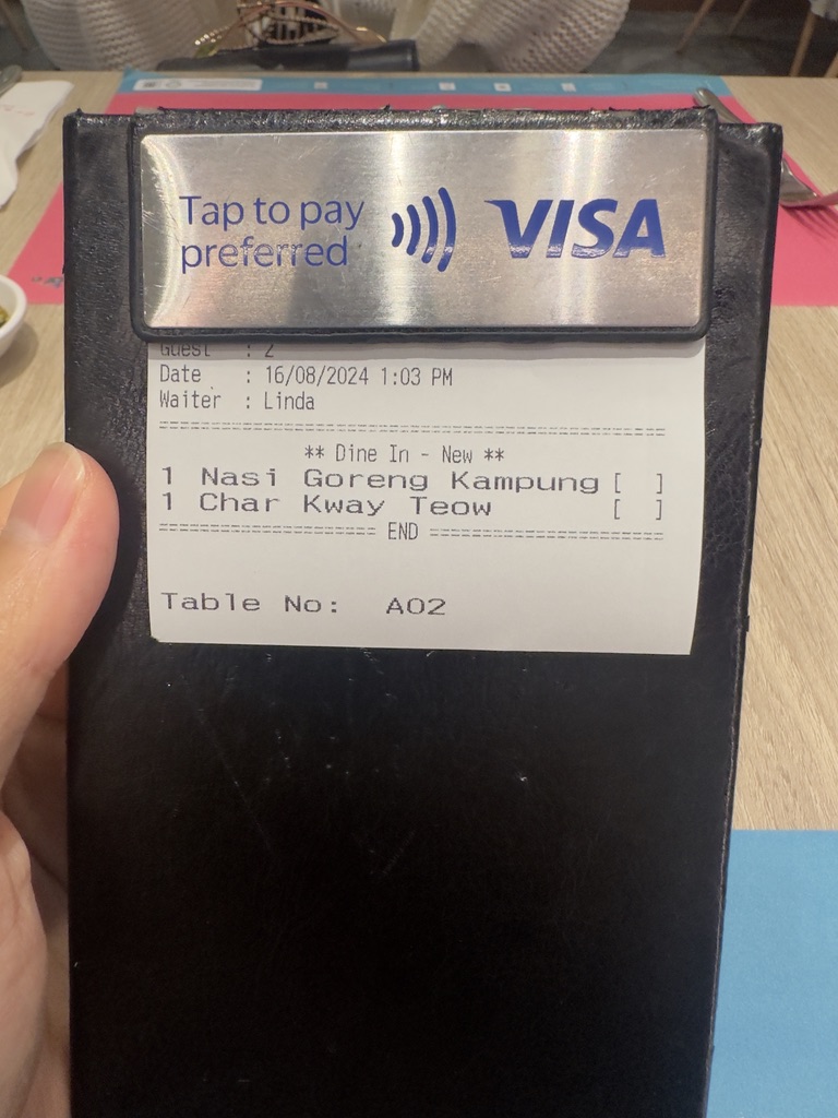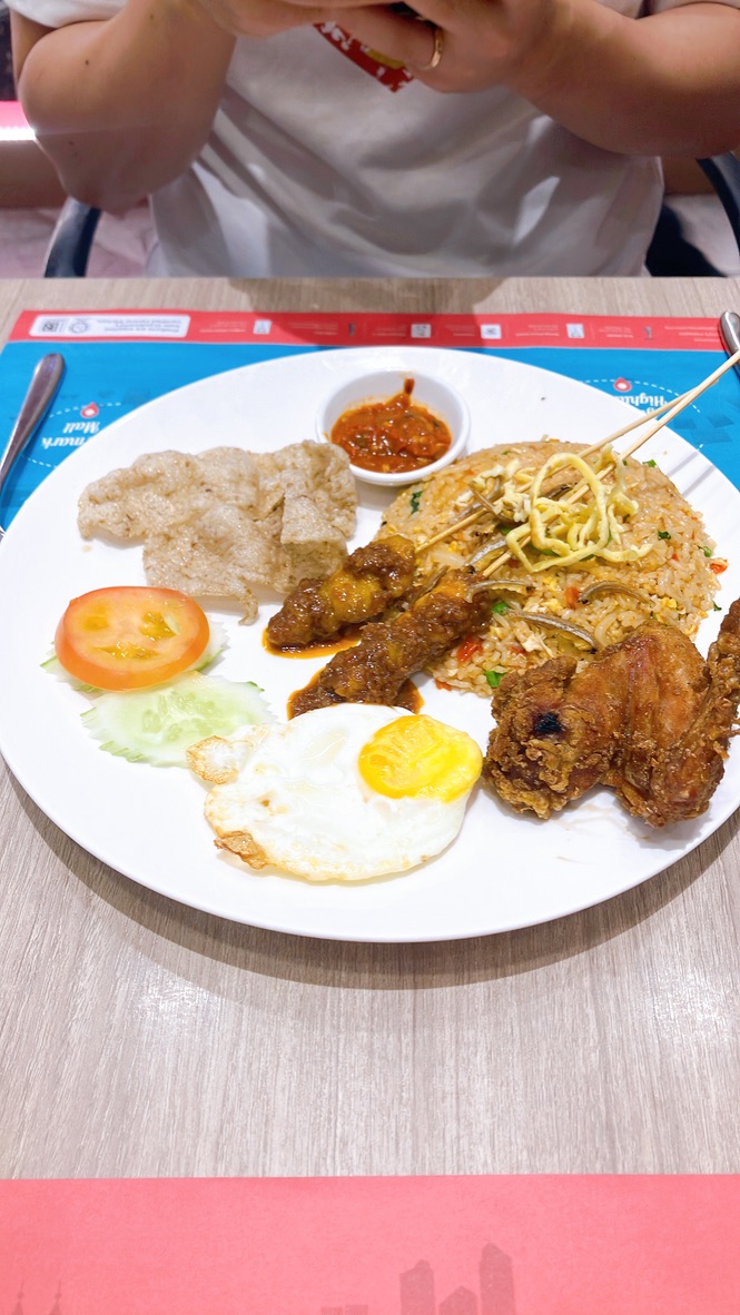 우리 부부는 밥 메뉴로 볶음밥에 치킨과 사테까지 같이 나오는 나시고랭 메뉴를 시켰고, 국수 메뉴로는 기본 차 퀘이티아우를 시켰다. 말레이시아 이기 때문에 돼지고기는 아예 없고 고기를 먹고 싶다면 소고기가 있으니 한 번 먹어보면 된다. 포스팅을 쓰는 지금 생각해 보니 락사도 하나 시켜 먹어보면 좋았을 것 같았다.