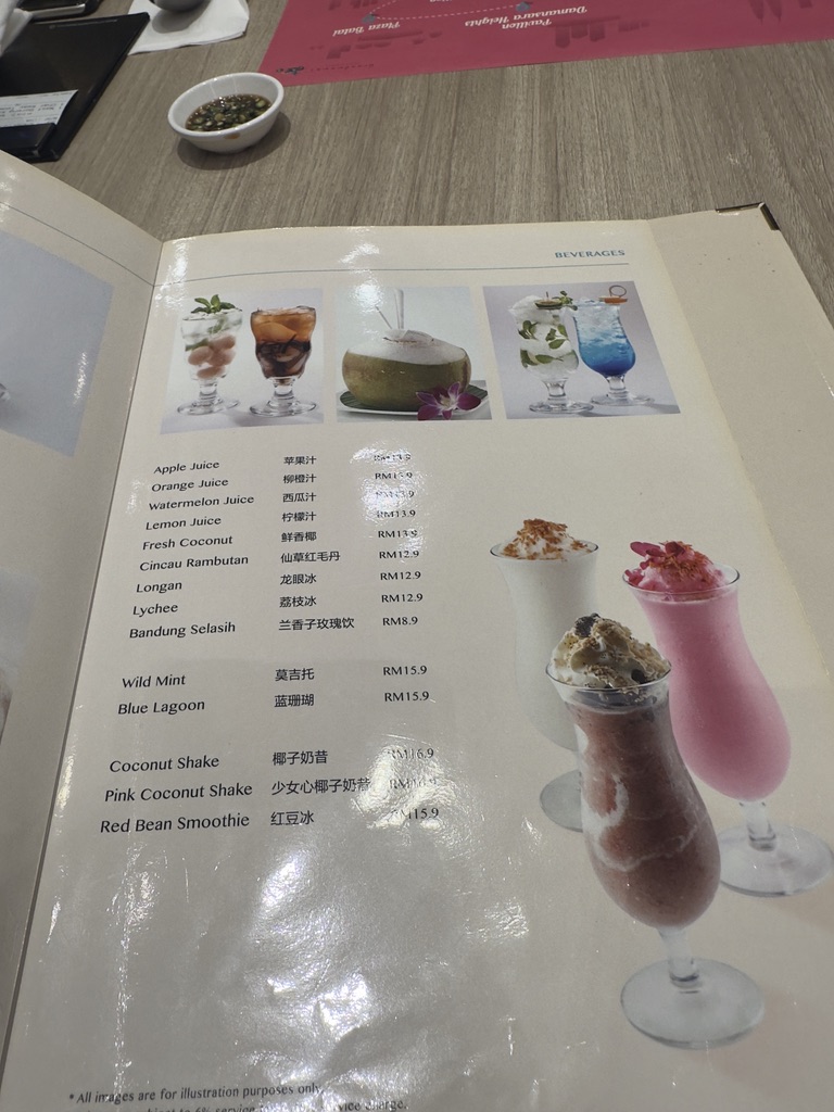 가격을 생각해보고 먹은 양을 생각해보면... 사실 터무니 없다. 나시고랭 메뉴가 RM22.90으로 7천원 정도이고, 차 퀘티아우는 RM19.90으로 6천원 정도이다. 물론 한국보다 싸다고 할 순 있으나 이 돈이면 파빌리온 몰이 아닌곳에서는 더 맛있는 걸 먹을 수 있을 것 같다는 생각이 들었다.