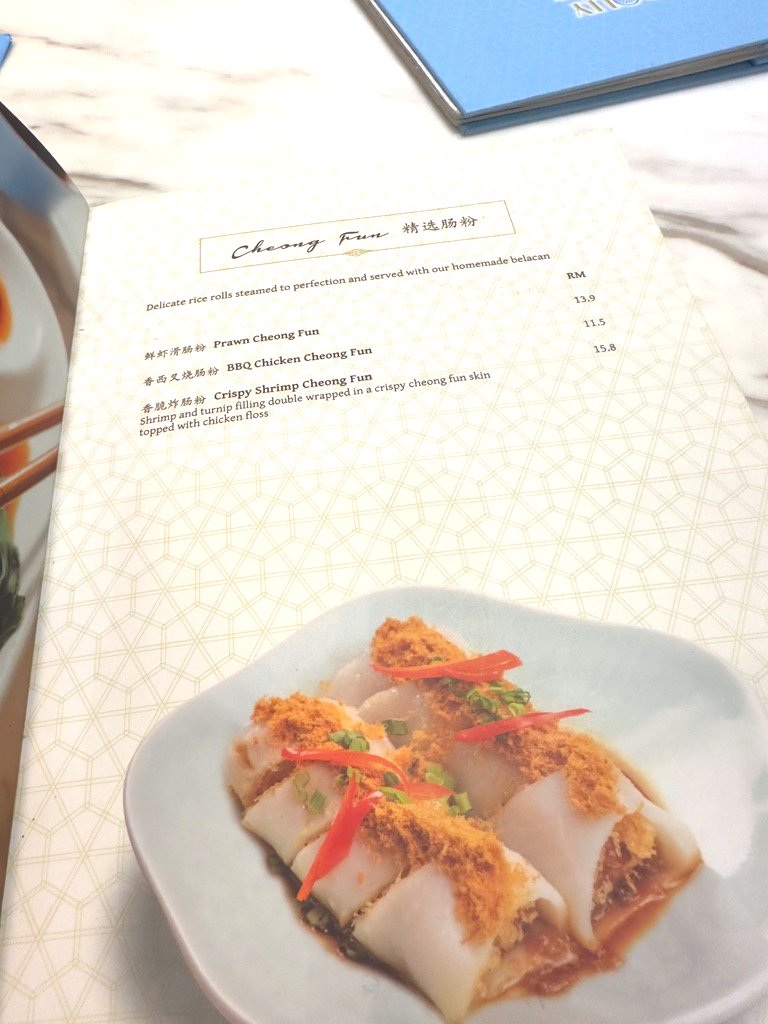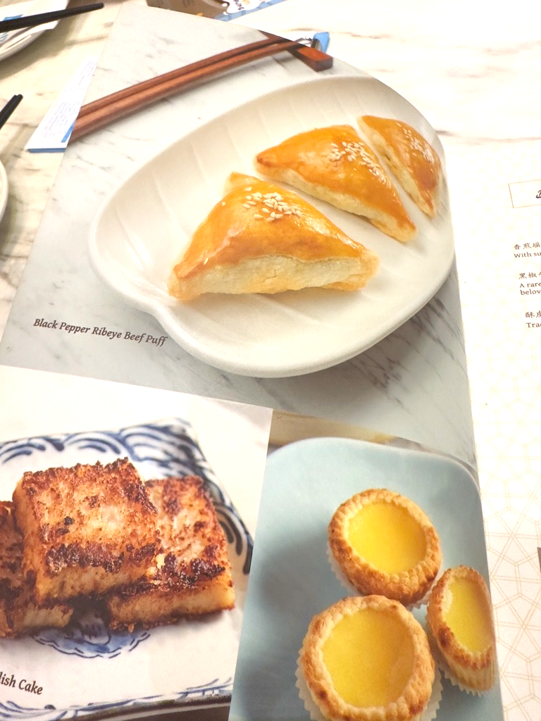 하가우(Har Gao Dumpling), 샤오마이(Siew Mai Dumpling), 스췐 만두 (Szechuam Dumpling), Crystal Prawn Dumpling, 새우 창펀(Prawn Cheong Fun), 크리스피 새우 창펀(Crispy Shrimp Cheong Fun), 소고기 차퀘이티아우 이렇게 먹었다.