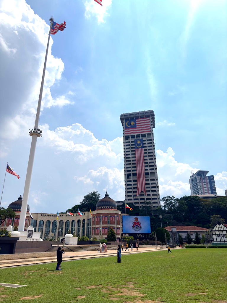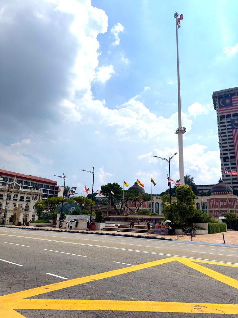 광장의 왼쪽으로는 여의도 광장의 태극기처럼 엄청나게 큰 말레이시아 국기가 걸려있는 계양기가 있고 분수가 있는데... 너무 더워서 그쪽까지 가진 못했다. 정말 너무 더웠는데 므르데카 광장이 그래도 크긴 하지만 걷는 동안 등이 타버리는 줄 알았다. 거기에 양산까지 들고 오지 않아서 정말 그늘이 하나도 없는 땡볕에서 거의 30분여를 지나다녔다.