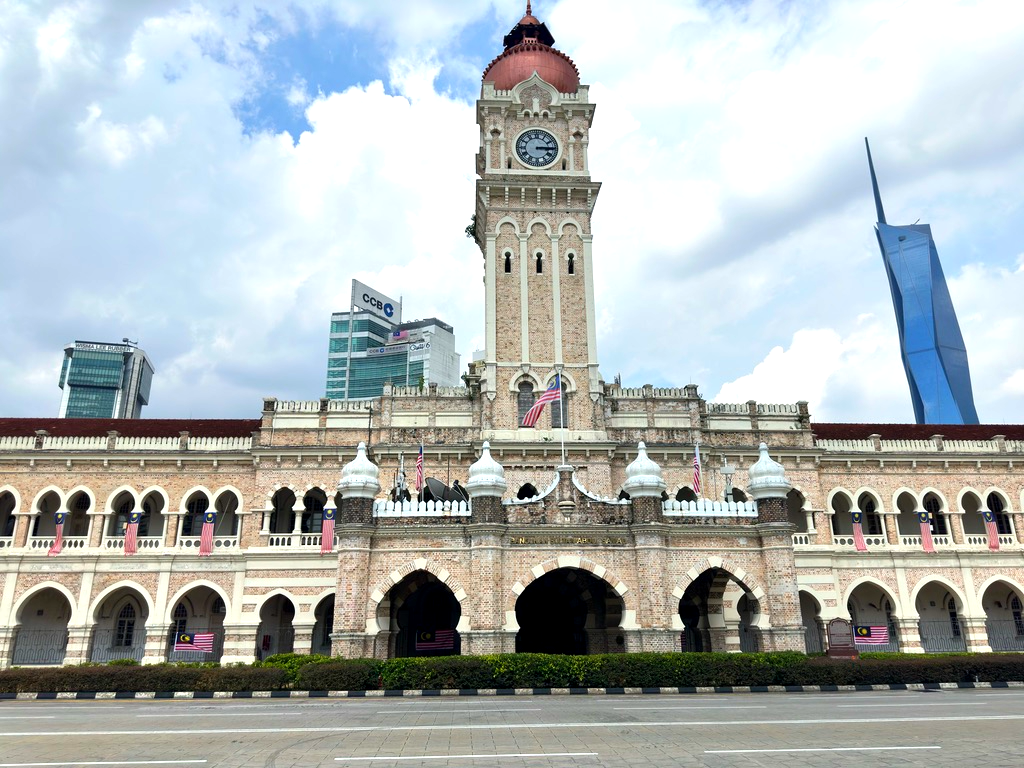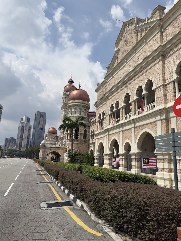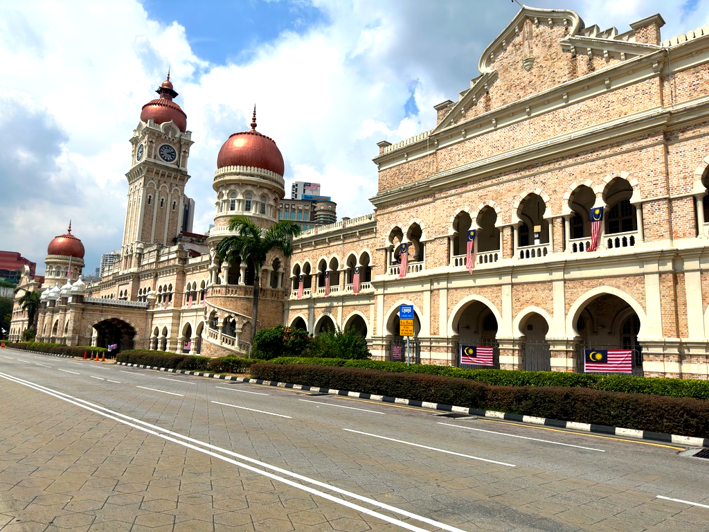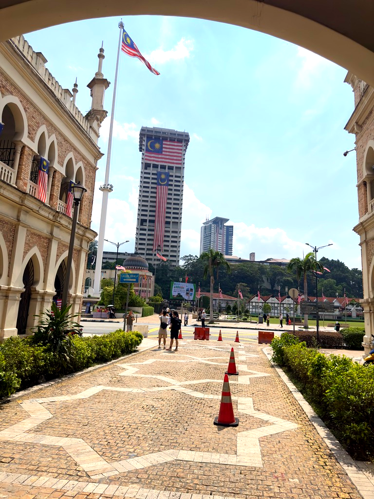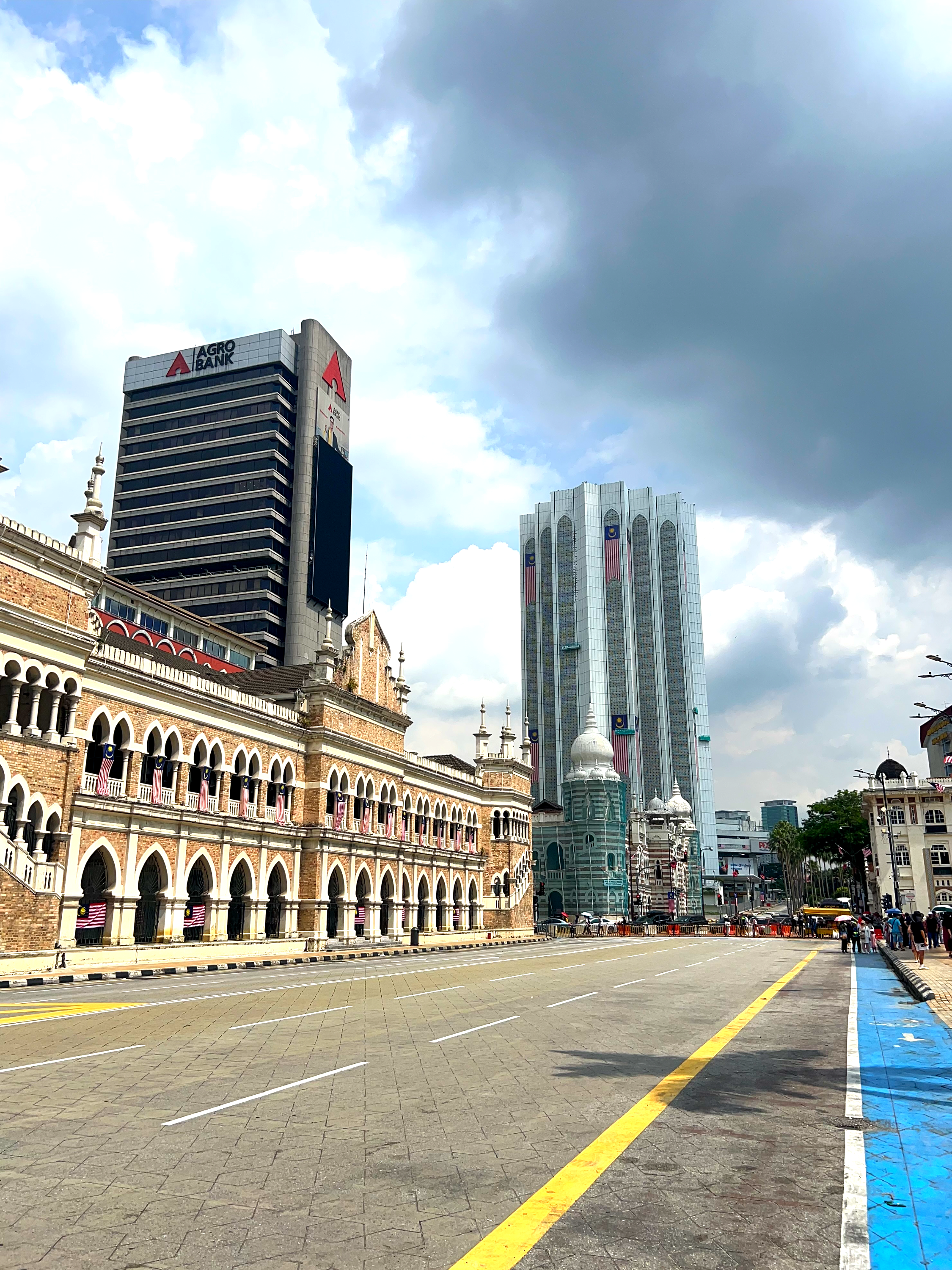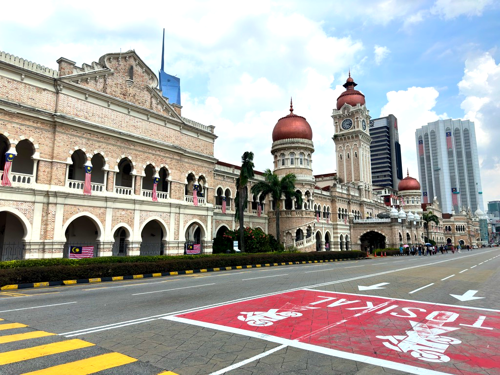 길을 따라 쭉 가면 광장이 보이는데 술탄 압둘 사마드 빌딩을 보면서 걸으면 된다. 주중의 경우에는 저녁 시간이 되어야 차가 없는데 주말에는 차량이 완전히 통제가 되어서 거의 므르데카 광장 끝까지 차가 없다. 사실 볼 때는 좋았는데 문제는 광장 끝까지 가야만 택시나 그랩을 잡을 수 있기 때문에 다 보고 나서 빠져나가기가 쉽지 않았다.