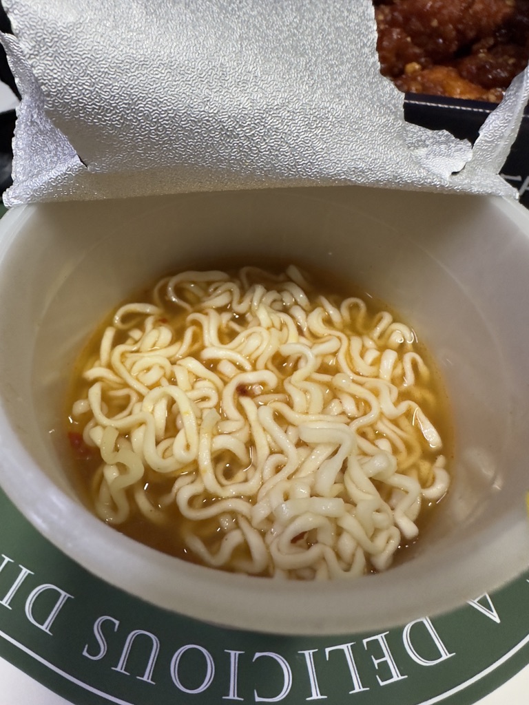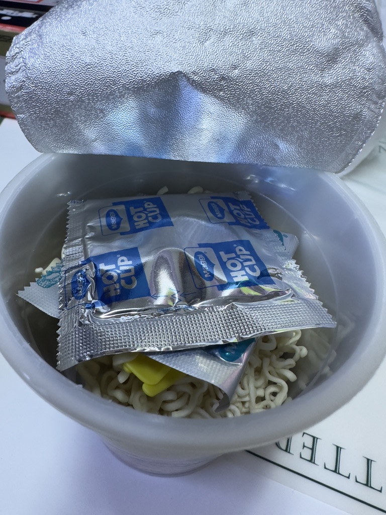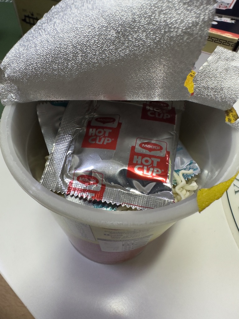 이 컵라면이 신기한 점은 컵라면 컵이 플라스틱이라는 점이다. 무려 컵라면이 플라스틱 컵이라니... ㅋㅋ 그런데 그렇게 좋은 플라스틱은 아니어서 그런지 먹고 나니 약간의 기름기가 남는 것이었다. 스프는 두 개씩 들어있고 각각 안에 포크가 들어있으니 물을 그대로 때려 넣으면 안 된다.