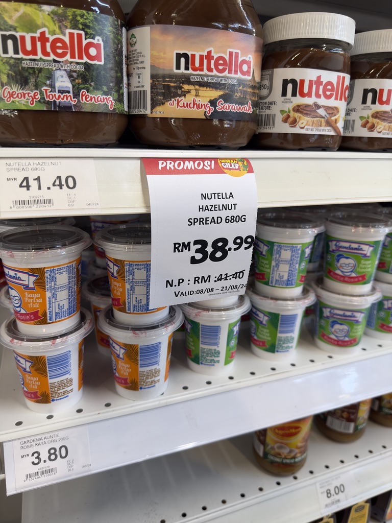 이 카야잼이 생각보다 구하기 힘들었는데 파빌리온, 그리고 방사르 마켓에서는 판단잼을 구할 수 없었고 숭가이왕 몰에 있는 자이언트 마켓에서만 안티 로지 카야잼이 있었다. 이것 말고도 뉴텔라에서 나오는 카야잼이 있던 것 같은데 우리는 보지 못했다. 그리고 다른 브랜드에 비해 이 안티 로지 카야잼은 거의 반값 이상 저렴했기 때문에 이 제품으로 사람들이 많이 구매하는 것 같다.