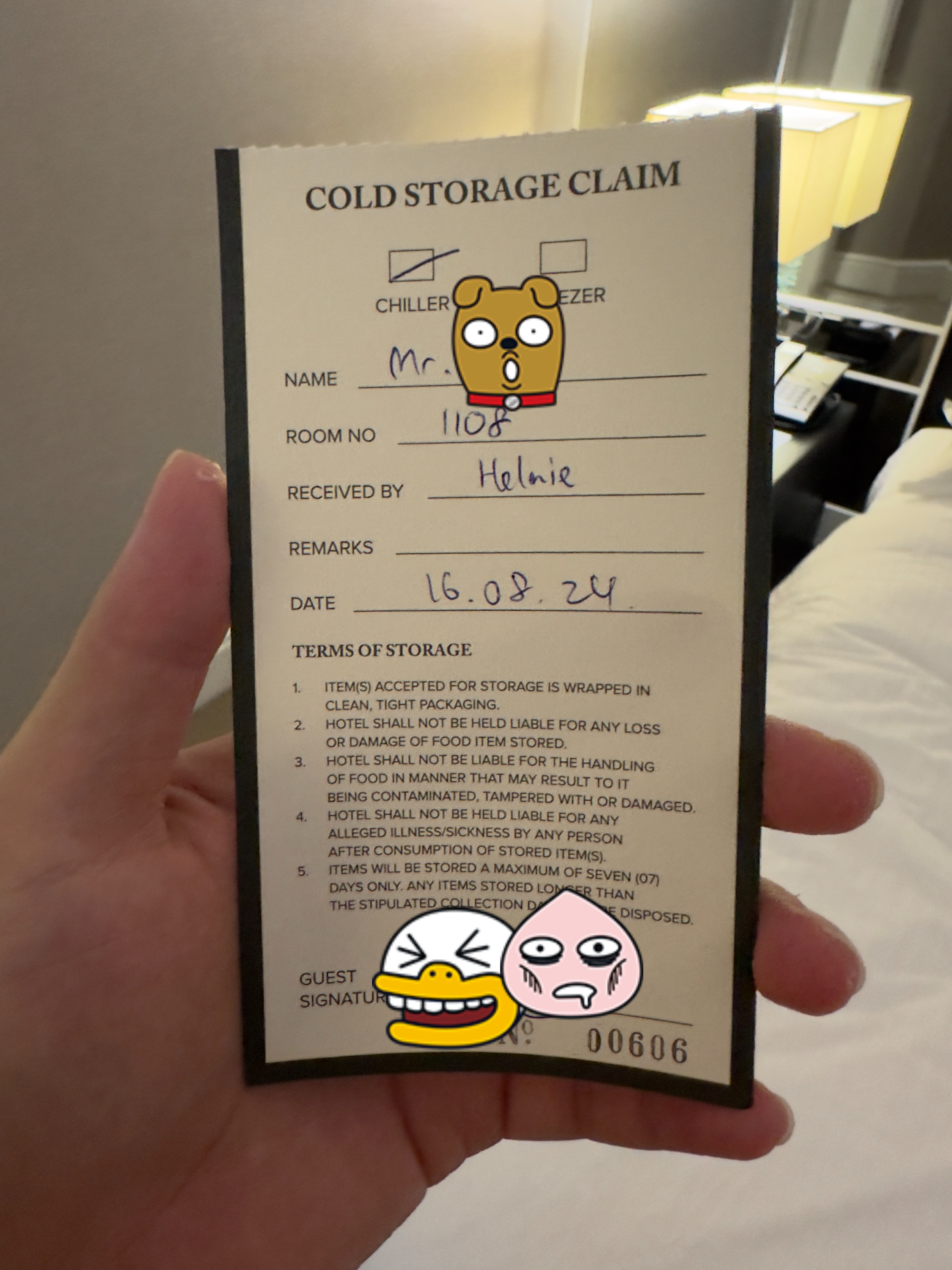 사실 이번 여행은 어머니 환갑 기념으로 갔었기 때문에 현지에서 케이크를 사야 했다. 그리고 케이크는 방에서 보관을 할 수 없었기 때문에 컨시어지에 문의를 했고 바로 냉장 보관을 해주겠다고 했다. 보관을 하면 영수증처럼 COLD STORAGE CLAIM이라고 해서 영수증을 주고 얼려서 보관해야 하는지 아니면 냉장 보관해야 하는지 확인을 하고 케이크를 가져가서 보관해 준다.