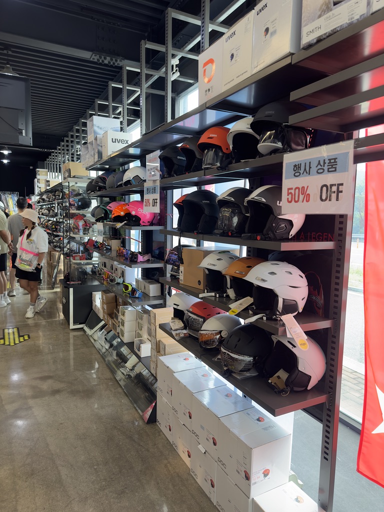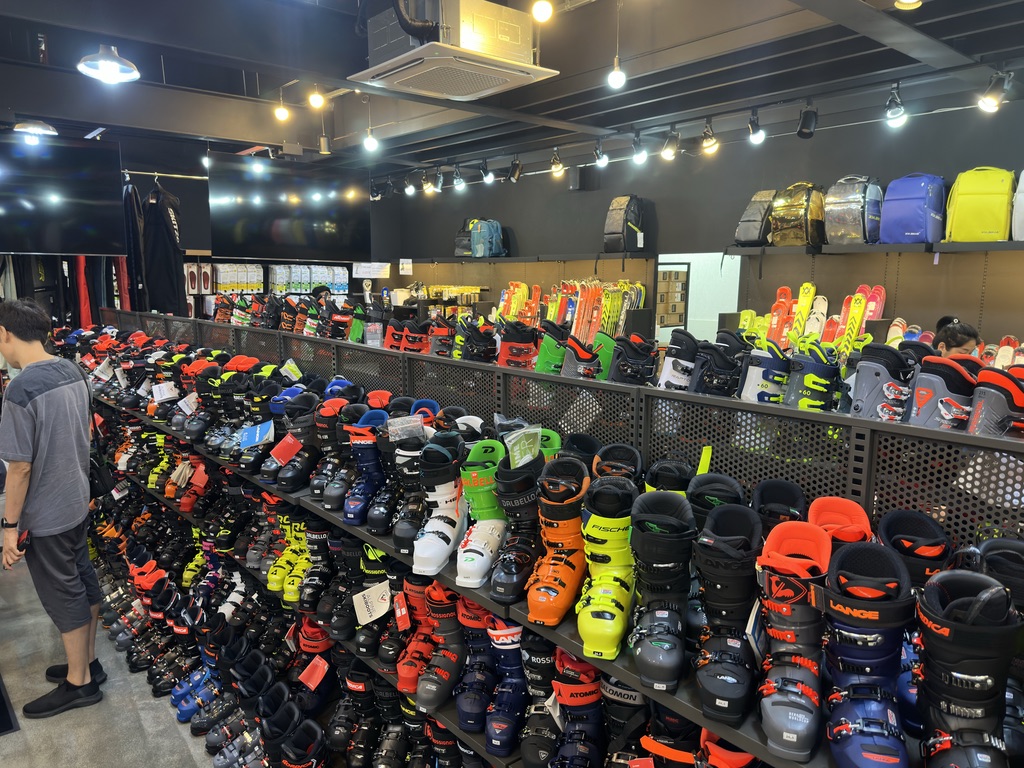 이곳으로 옷을 사러 가는 사람들도 많지만 사실 백미는 장비이다. 플레이트의 경우에는 개인적인 생각에 렌털로 다양한 스키를 경험하다 맞는 것이 있으면 비슷한 스펙으로 싼 것을 사는 게 좋다고 생각한다. 하지만 부츠는 다르다. 부츠는 새것을 신어봐서 자신에게 맞으면 그 맞는 부츠를 사서 자신의 발에 길들여야 한다. 그렇기 때문에 플레이트는 중고로 살 수 있어도 부츠는 그냥 사는 것이 좋다.