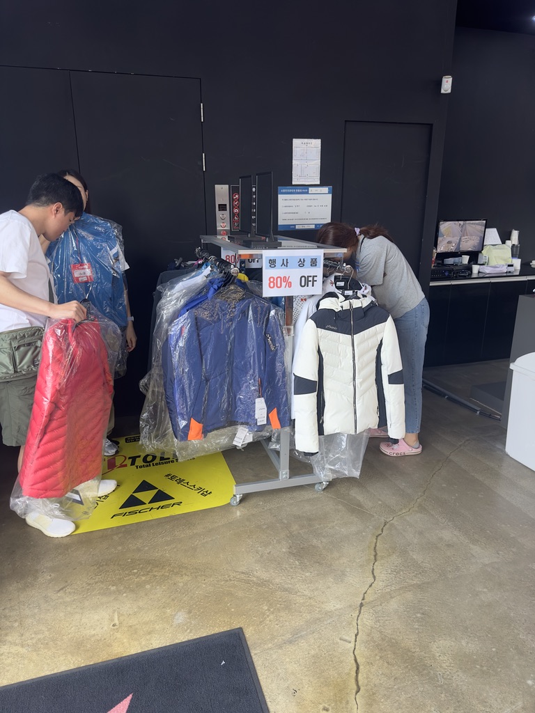 이 날은 동호회에서 왔는지 동호회 사람들이 단체처럼 와 있었다. 그리고 그렇게 많은 사람들이 있지는 않았는데 1층에는 옷, 2층에는 스키장비들이 있어서 자신의 목적에 따라다니는 듯했다. 조금 아쉬운 점은 옷 같은 경우에는 정찰제로 가격이 쓰여 있어 그 쓰인 가격에서 얼마인지를 이미 알고 있었지만 스키 장비의 경우에는 일일이 직원들의 안내를 받아서 가격을 물어봐야 하는 단점이 있었다.