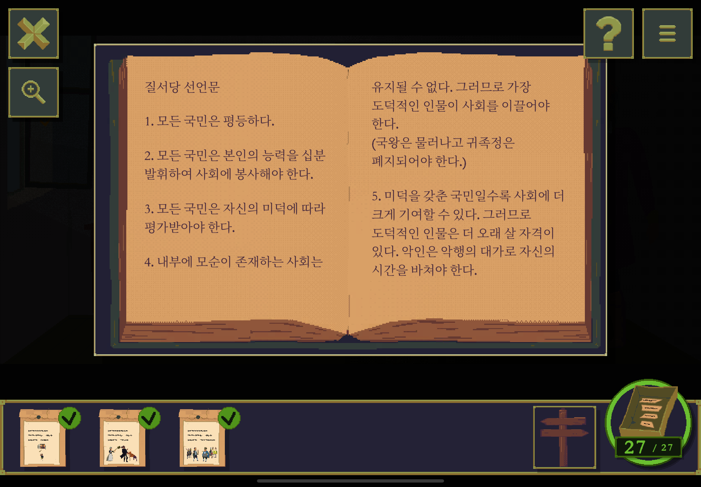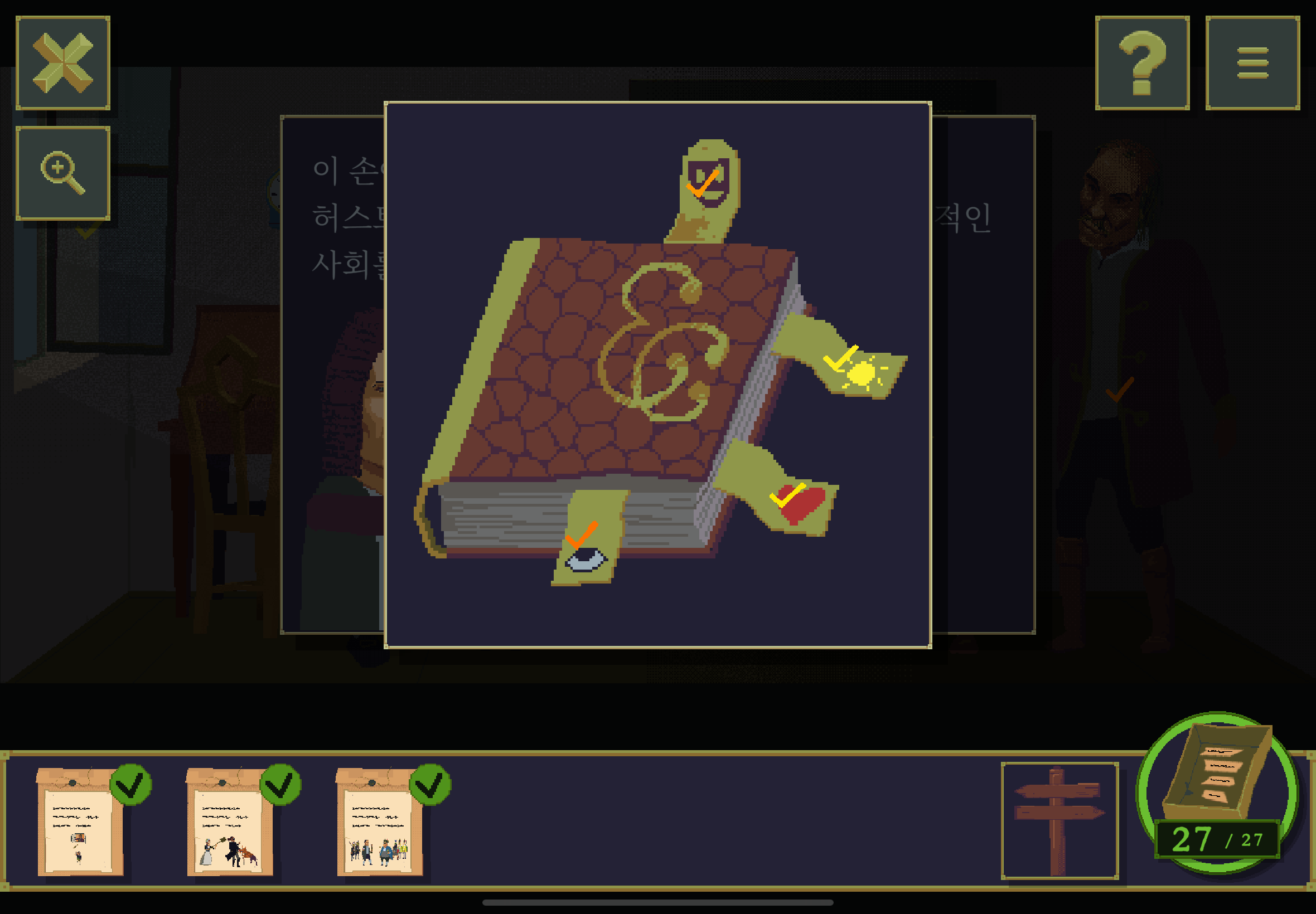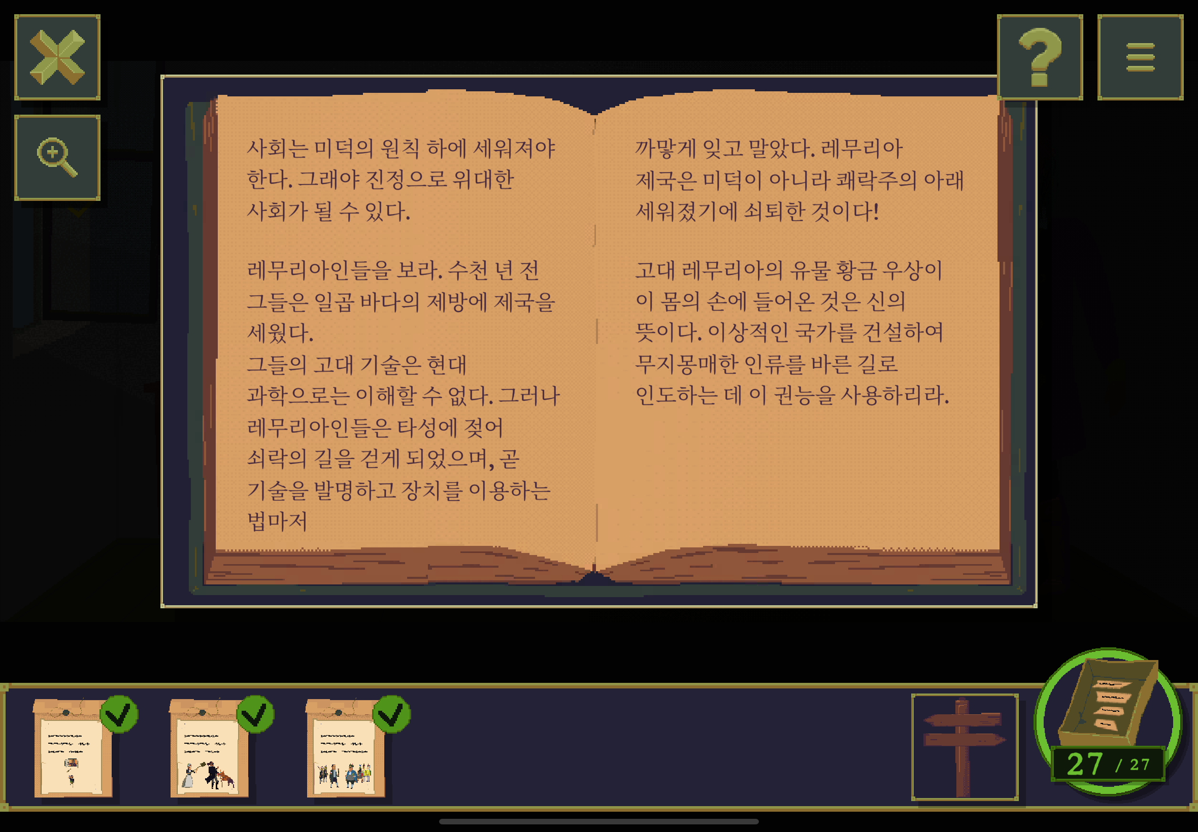 우선 공략이긴 하지만 태블릿, PC, 모바일마다 다르기도 하고 거기에 버전이 몇이냐에 따라서 또 뷰와 약간의 워딩이 다르기 때문에 공략을 볼 때 완전히 똑같지 않더라고 일단 뜻을 알고 가면 도움이 된다. 그리고 너무 많은 힌트 이용은 게임의 재미를 떨어뜨리니 조심하시길.