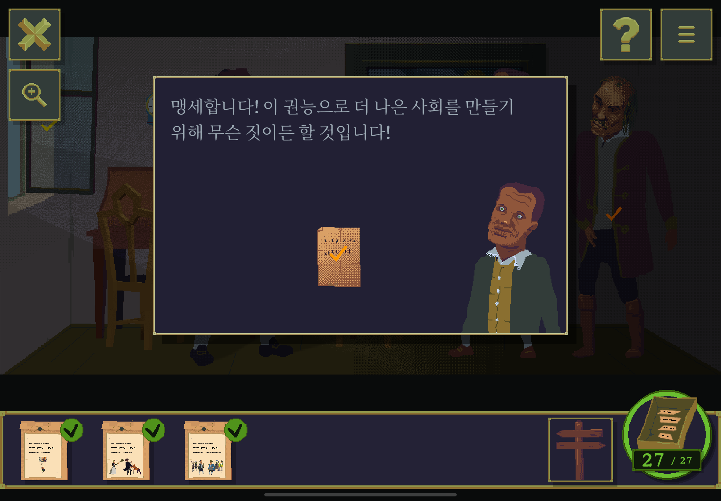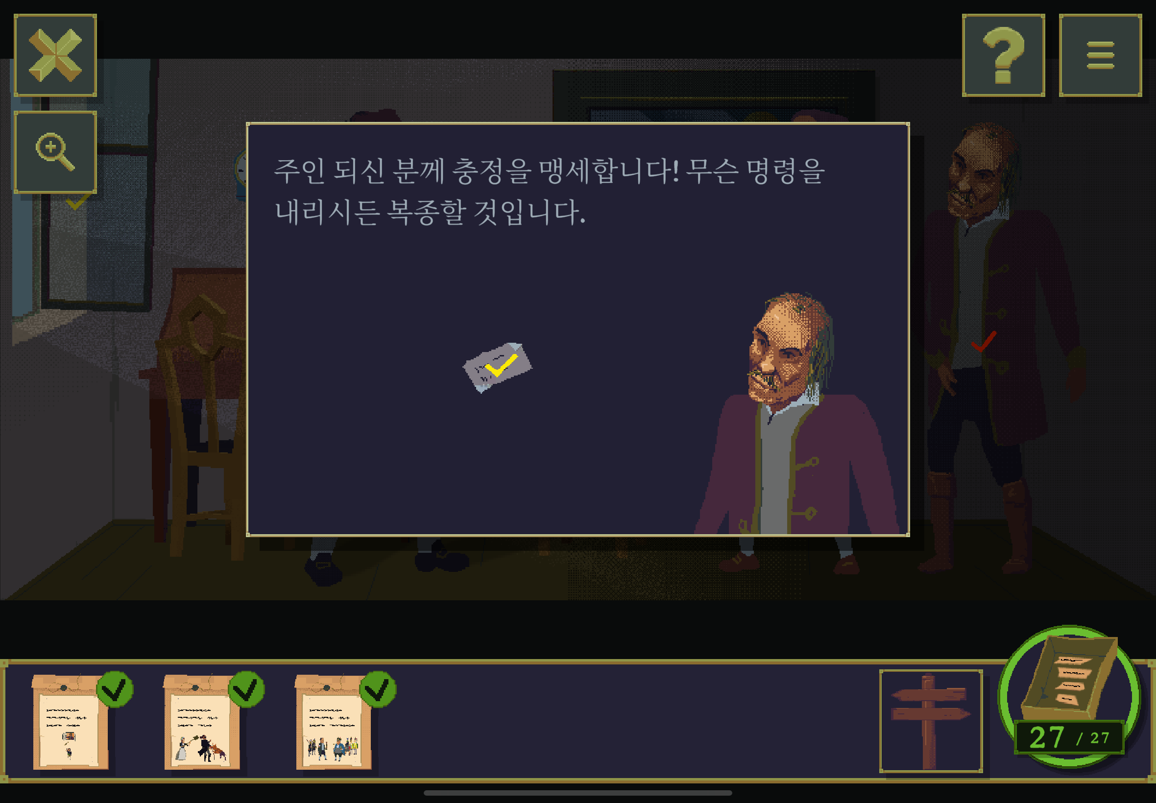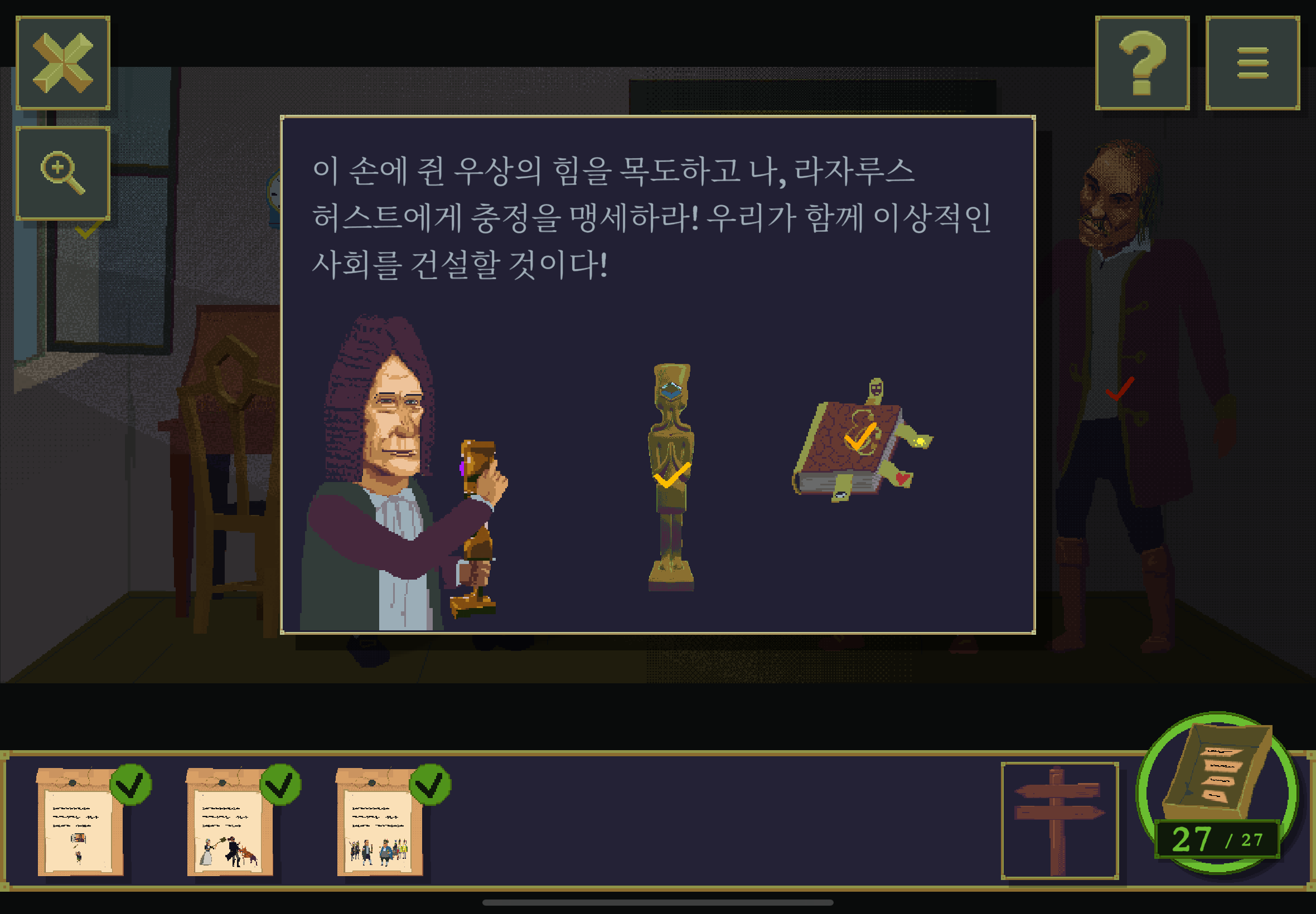 우선 공략이긴 하지만 태블릿, PC, 모바일마다 다르기도 하고 거기에 버전이 몇이냐에 따라서 또 뷰와 약간의 워딩이 다르기 때문에 공략을 볼 때 완전히 똑같지 않더라고 일단 뜻을 알고 가면 도움이 된다. 그리고 너무 많은 힌트 이용은 게임의 재미를 떨어뜨리니 조심하시길.