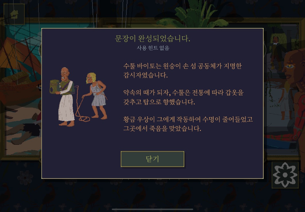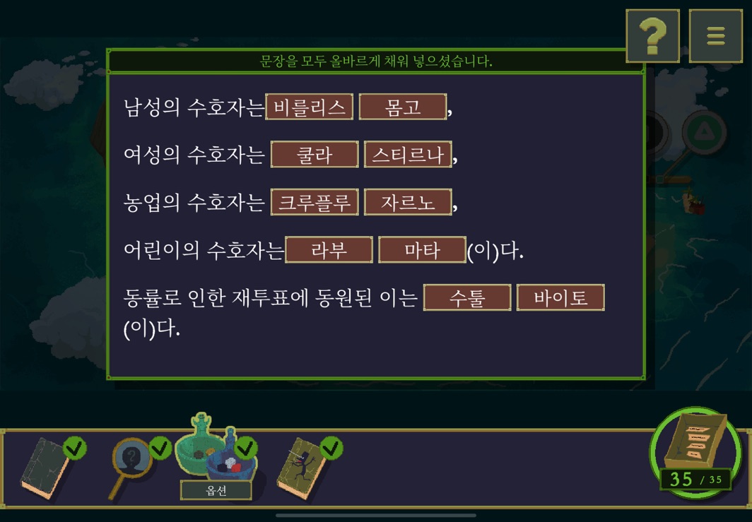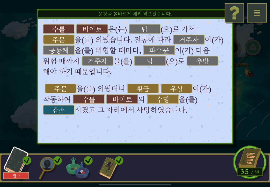 우선 공략이긴 하지만 태블릿, PC, 모바일마다 다르기도 하고 거기에 버전이 몇이냐에 따라서 또 뷰와 약간의 워딩이 다르기 때문에 공략을 볼 때 완전히 똑같지 않더라고 일단 뜻을 알고 가면 도움이 된다. 그리고 너무 많은 힌트 이용은 게임의 재미를 떨어뜨리니 조심하시길.