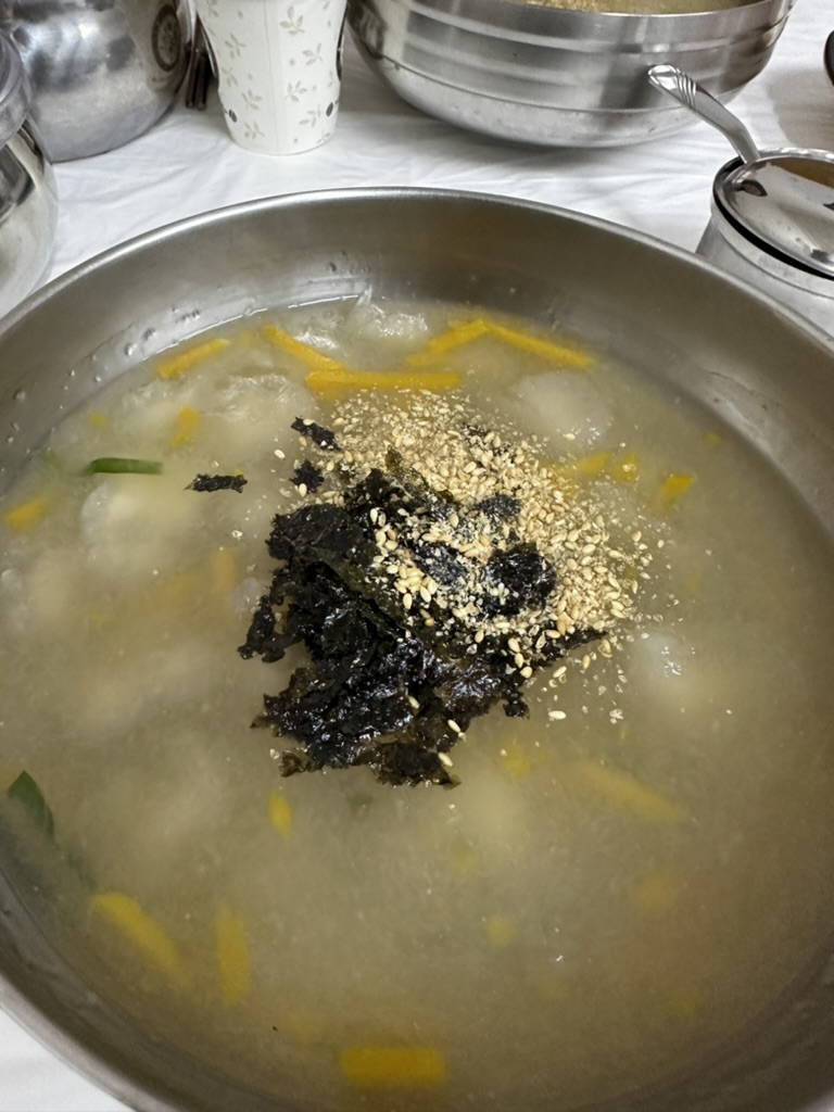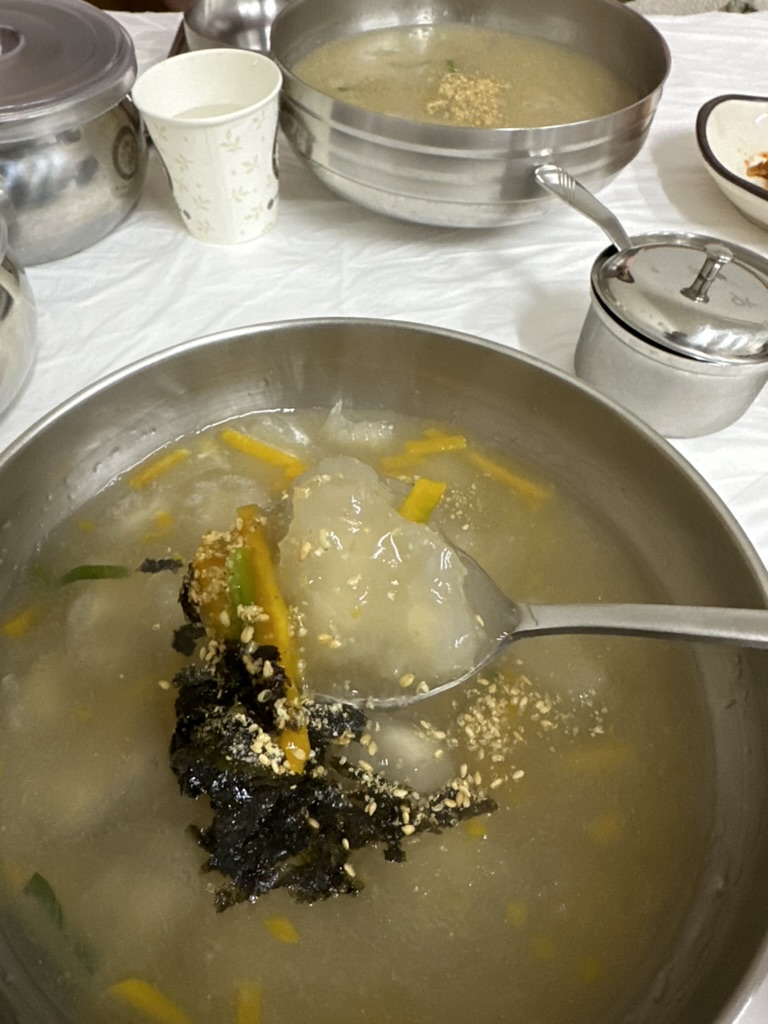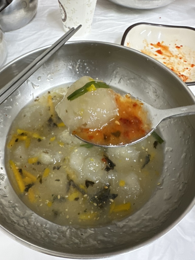 원래 감자떡을 좋아하지만 이렇게 국물에 감자떡인 옹심이를 넣어서 먹으니 색다르기도 하면서 의외로 맛이 조화로워서 놀랐다.