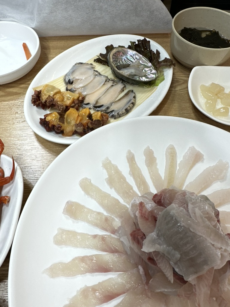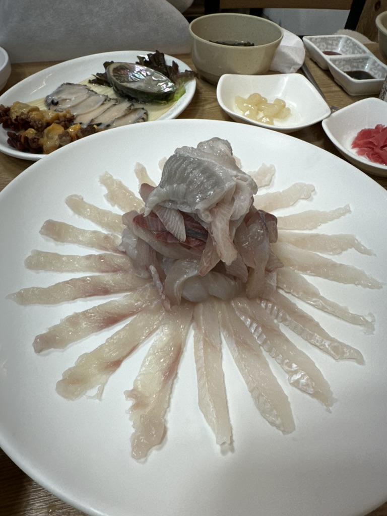 다른 반찬은 멍게와 전복이 나오는데... 그냥 그렇다. 회는 선어가 아닌 활어이기 때문에 엄청나게 쫄깃하긴 하지만... 그것만큼 단맛이나 혹은 맛이 좋진 않다. 그냥 가성비 횟집 이상 이하도 아니기 때문에 그렇게 막 추천할 정도는 아닌 것 같다.