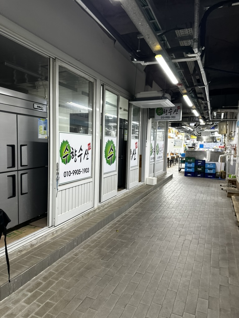 주문진 수산시장 쪽에는 2개의 회센터가 있는데 수산시장 안에 있는 회센터와 조금만 걸어가면 나오는 주문진 회센터이다. 이 주문진 회센터에 뒷문으로 들어가면 수향수산이 바로 나오는데 생각보다 규모가 꽤나 크다. 5시 정도 되는 시간이어서 사람들이 그렇게 많지는 않았지만 그래도 3팀정도 이미 먹고 있었다.