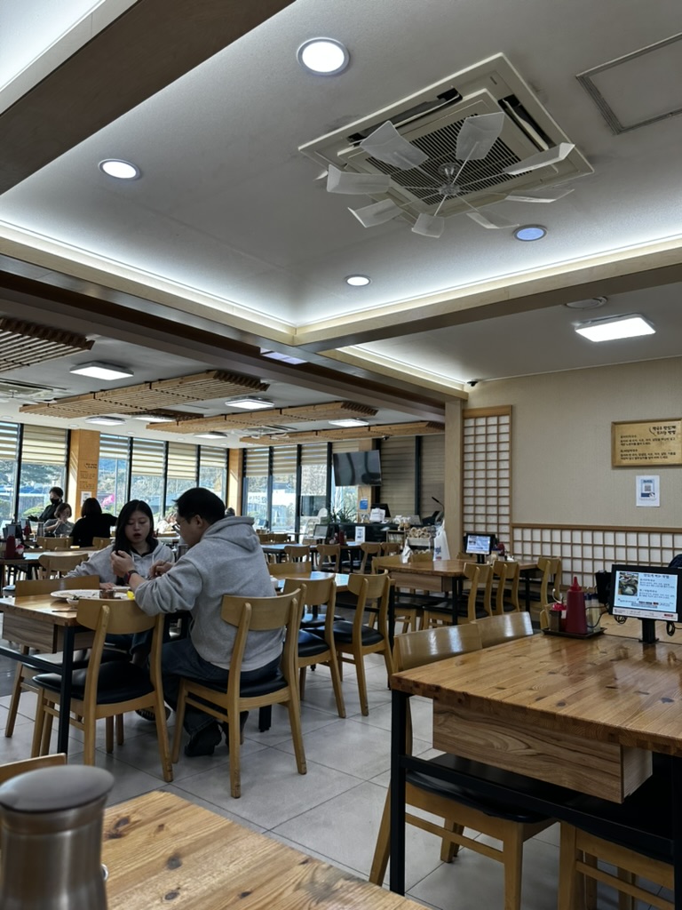 매장은 직사각형으로 쭉 뻗어있기 때문에 자리가 안쪽까지 많다. 사람들이 정말 많다는 후기는 보지 못했고 우리가 갔을 때도 그렇게 많지 않았다. 그래도 한 10팀정도 음식을 먹고 있었다. 키오스크로 주문을 해도 되는데 주문을 받으러 직접 오기도 해서 원하는 대로 주문을 하면 된다. 하지만 문제는 주문을 하지도 않았는데 갑자기 만족도 설문조사를 하고 메밀만두를 서비스로 받으라고 했다.