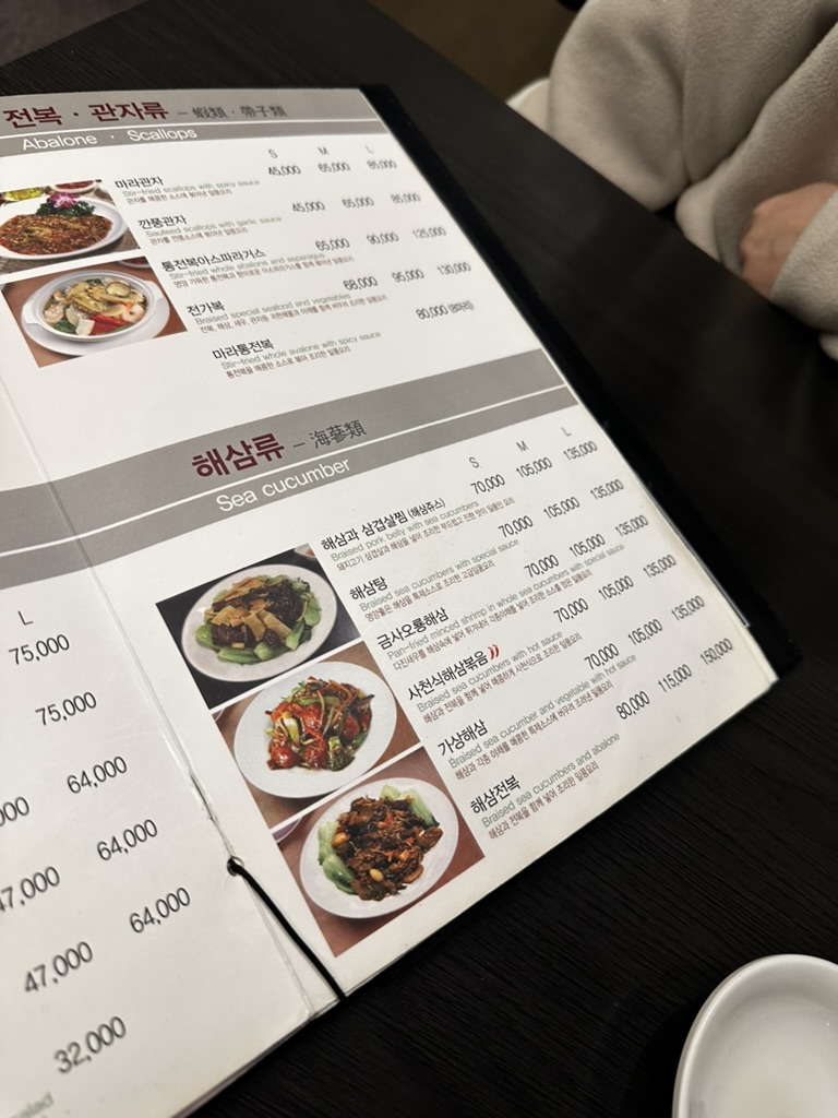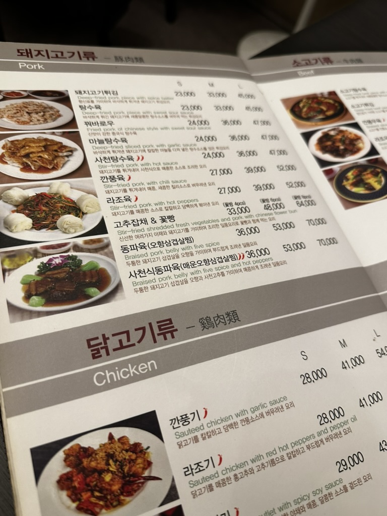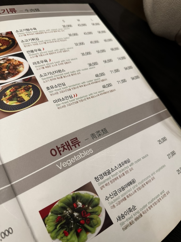 런치 코스는 A, B로 1인 24,000원, 29,000원 2가지가 있다. 메뉴가 엄청나게 많은데 여기서 유명한 것은 마늘 탕수육과 양장피 식사는 차돌 짬뽕이 유명하다. 우리는 양장피와 간짜장, 차돌짬뽕을 주문을 했다. 사실 음식이 나오기 전에는 가격이 조금 비싼 감이 없지 않아 있어서 조금 놀라기도 했는데 막상 음식을 보니 가격이 꽤나 합리적으로 보였다.