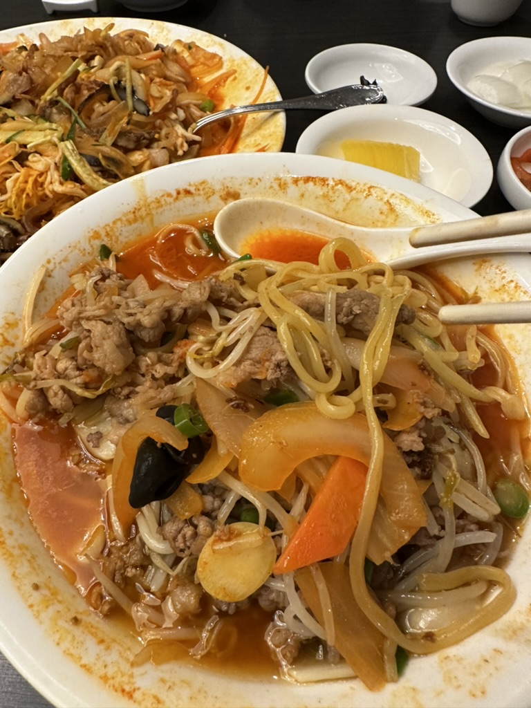 이 차돌짬뽕이 처음 나왔을 때... 왜 12,000원인지 알게 되었다. 차돌의 양도 양이지만 전체적인 짬뽕의 양이 일반 짬뽕의 2배라고 할 수 있었다. 심지어 차돌에 묻혀서 면을 볼 수가 없었는데 차돌을 좀 먹고 뒤집으니 그때야 면이 모여서 계속 국물이 줄어드는 사태가 벌어졌다. 그리고 국물이 정말 기름기가 엄청난 짬뽕이었다. 물론 기름맛이 주이긴 하지만 짬뽕의 불향 매운맛이 여전히 남아있기 때문에 아주 맛있는 짬뽕이었다.