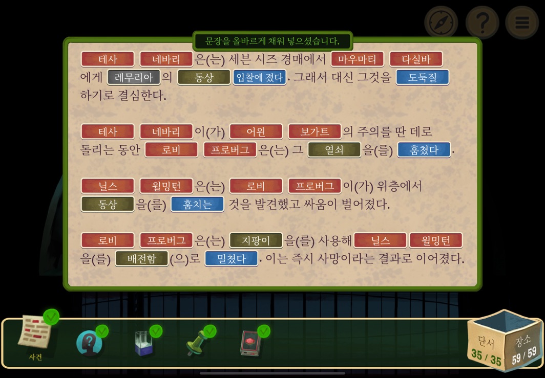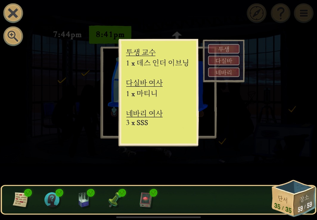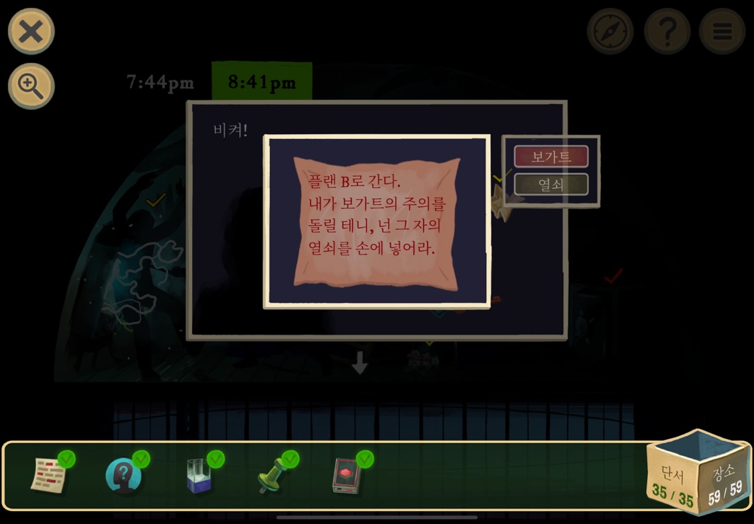 우선 공략이긴 하지만 태블릿, PC, 모바일마다 다르기도 하고 거기에 버전이 몇이냐에 따라서 또 뷰와 약간의 워딩이 다르기 때문에 공략을 볼 때 완전히 똑같지 않더라고 일단 뜻을 알고 가면 도움이 된다. 그리고 너무 많은 힌트 이용은 게임의 재미를 떨어뜨리니 조심하시길.