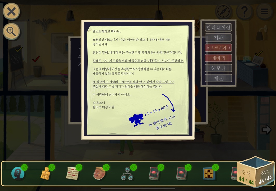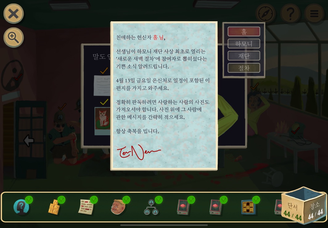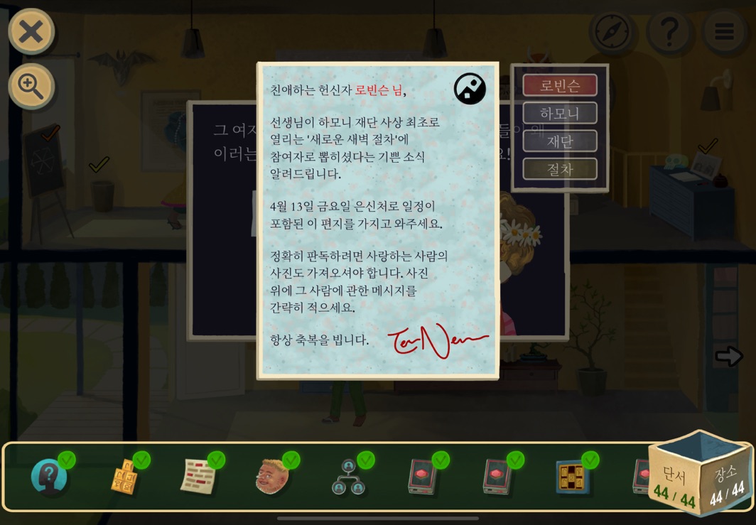 우선 공략이긴 하지만 태블릿, PC, 모바일마다 다르기도 하고 거기에 버전이 몇이냐에 따라서 또 뷰와 약간의 워딩이 다르기 때문에 공략을 볼 때 완전히 똑같지 않더라고 일단 뜻을 알고 가면 도움이 된다. 그리고 너무 많은 힌트 이용은 게임의 재미를 떨어뜨리니 조심하시길.