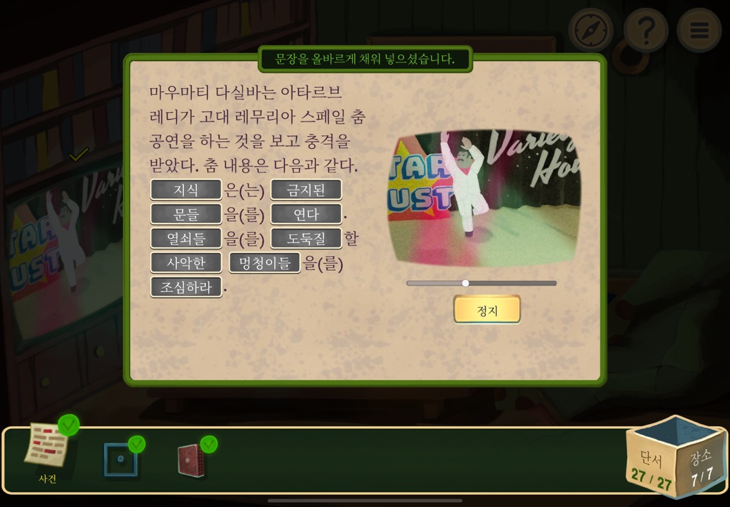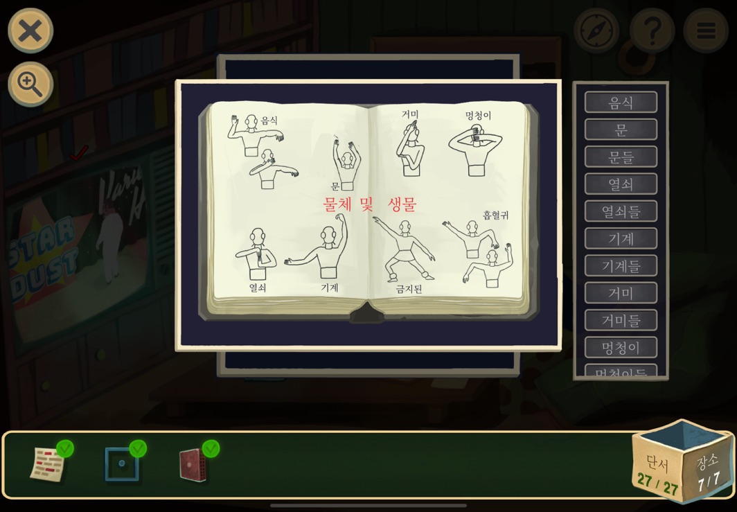 우선 공략이긴 하지만 태블릿, PC, 모바일마다 다르기도 하고 거기에 버전이 몇이냐에 따라서 또 뷰와 약간의 워딩이 다르기 때문에 공략을 볼 때 완전히 똑같지 않더라고 일단 뜻을 알고 가면 도움이 된다. 그리고 너무 많은 힌트 이용은 게임의 재미를 떨어뜨리니 조심하시길.