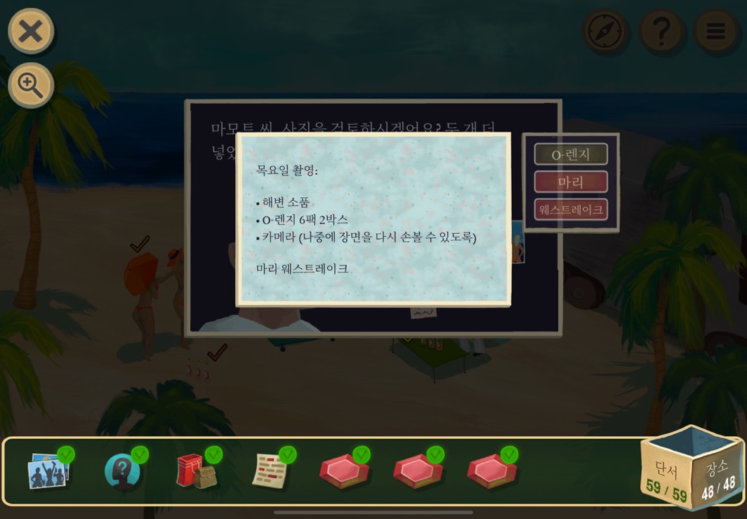 우선 공략이긴 하지만 태블릿, PC, 모바일마다 다르기도 하고 거기에 버전이 몇이냐에 따라서 또 뷰와 약간의 워딩이 다르기 때문에 공략을 볼 때 완전히 똑같지 않더라고 일단 뜻을 알고 가면 도움이 된다. 그리고 너무 많은 힌트 이용은 게임의 재미를 떨어뜨리니 조심하시길.