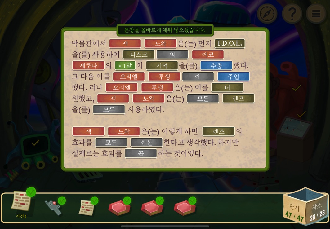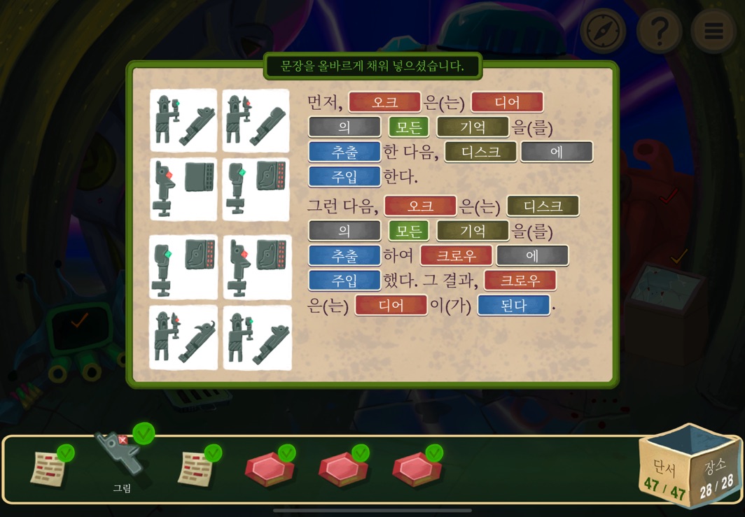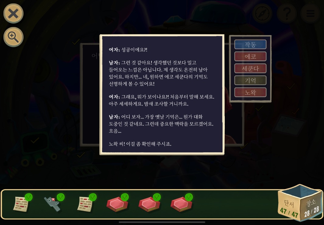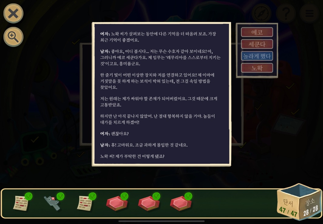 우선 공략이긴 하지만 태블릿, PC, 모바일마다 다르기도 하고 거기에 버전이 몇이냐에 따라서 또 뷰와 약간의 워딩이 다르기 때문에 공략을 볼 때 완전히 똑같지 않더라고 일단 뜻을 알고 가면 도움이 된다. 그리고 너무 많은 힌트 이용은 게임의 재미를 떨어뜨리니 조심하시길.